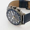 Slazenger SL.09.2293.2.03 — это стильные наручные часы, выполненные в современном дизайне и отлично подходящие для повседневного использования. Корпус диаметром 45 мм изготовлен из прочного металла с черным IP-покрытиемIP-покрытиеМетод ионного напыления. Демонстрирует повышенную устойчивость к истиранию, окислению и химическим веществам. Под воздействием высокого давления и температуры около 1500°C молекулы металла надёжно соединяются с частицами корпуса часов. и дополнен минеральным стекломМинеральное стеклоМинеральное стекло представляет собой искусственно выращенный минерал кварца. Такое стекло отличается особой устойчивостью к повреждениям и царапинам. Уступает по некоторым качествам сапфировому стеклу., которое защищает синий циферблат. Синий кожаный ремешок шириной 24 мм оснащён надежной классической застежкой, которая обеспечивает комфортную посадку на руке. Кварцевый механизм гарантирует точный ход, а водозащита уровня WR 50 позволяет не снимать часы во время мытья рук или под дождём. Модель оснащена люминесцентным покрытиемЛюминесцентное покрытиеПозволяет считывать показания времени в темноте. Производители наносят на стрелки, часовые индексы, безель или поверхность циферблата светонакопительный состав, дающий холодное свечение. стрелок и меток, что облегчает считывание времени в темноте. Дополнительные малые циферблаты отображают дату, день недели и текущее время в 24-часовом формате. Часы также оснащены заводной головкой с защитой и безелемБезельВнешний ободок, закрепляющий стекло. В спортивных часах так называется поворотное кольцо с делениями на циферблате, выполняет роль таймера – замеряет отрезки времени на шкале. Неподвижный безель – элемент декора. Однонаправленно вращающийся безель на дайверских часах позволяет фиксировать моменты погружения и выныривания на поверхность. с синим IP-покрытиемIP-покрытиеМетод ионного напыления. Демонстрирует повышенную устойчивость к истиранию, окислению и химическим веществам. Под воздействием высокого давления и температуры около 1500°C молекулы металла надёжно соединяются с частицами корпуса часов. и секундной разметкой. Вес изделия составляет 80 грамм.