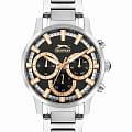 Мужские наручные часы Slazenger SL.09.2294.2.03 сочетают стильный современный дизайн и высокую функциональность. Корпус из прочного металла диаметром 44 мм и толщиной 13 мм защищён минеральным стекломМинеральное стеклоМинеральное стекло представляет собой искусственно выращенный минерал кварца. Такое стекло отличается особой устойчивостью к повреждениям и царапинам. Уступает по некоторым качествам сапфировому стеклу., устойчивым к царапинам. Серебристый металлический браслет шириной 22 мм оснащён надёжной раскладной застёжкойРаскладная застёжкаТакой тип застёжки используется только на браслетах из металла. Она никогда не раскрывается полностью, происходит разделение на 2 и более частей. Раскладывающая застёжка снизит вероятность потери часов к минимуму., обеспечивающей комфортное ношение. Кварцевый механизм гарантирует точность хода, а водозащита уровня WR 50 позволяет не снимать часы при мытье рук или во время дождя. Модель оснащена люминесцентным покрытиемЛюминесцентное покрытиеПозволяет считывать показания времени в темноте. Производители наносят на стрелки, часовые индексы, безель или поверхность циферблата светонакопительный состав, дающий холодное свечение. стрелок и меток, что облегчает считывание времени в темноте. На малых циферблатах отображаются дата, день недели и текущее время в 24-часовом формате, что делает модель особенно удобной для повседневного использования. Циферблат часов насыщенного черного цвета. Заводная головка с защитой и завинчивающаяся задняя крышка обеспечивают дополнительную надежность конструкции. Вес часов составляет 123 грамма.