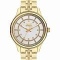 Женские наручные часы Slazenger SL.09.2295.3.06 — это элегантный аксессуар, который подчеркнет утончённый стиль своей обладательницы. Корпус диаметром 36 мм и толщиной 11,5 мм выполнен из прочного металла с золотистым IP-покрытиемIP-покрытиеМетод ионного напыления. Демонстрирует повышенную устойчивость к истиранию, окислению и химическим веществам. Под воздействием высокого давления и температуры около 1500°C молекулы металла надёжно соединяются с частицами корпуса часов. и надёжно защищён минеральным стекломМинеральное стеклоМинеральное стекло представляет собой искусственно выращенный минерал кварца. Такое стекло отличается особой устойчивостью к повреждениям и царапинам. Уступает по некоторым качествам сапфировому стеклу., устойчивым к царапинам. Серебристый циферблат украшен изящными кристаллами, придающими часам особый блеск и изысканность. Модель оснащена люминесцентным покрытиемЛюминесцентное покрытиеПозволяет считывать показания времени в темноте. Производители наносят на стрелки, часовые индексы, безель или поверхность циферблата светонакопительный состав, дающий холодное свечение. стрелок, что облегчает считывание времени в темноте. Особое внимание привлекает безельБезельВнешний ободок, закрепляющий стекло. В спортивных часах так называется поворотное кольцо с делениями на циферблате, выполняет роль таймера – замеряет отрезки времени на шкале. Неподвижный безель – элемент декора. Однонаправленно вращающийся безель на дайверских часах позволяет фиксировать моменты погружения и выныривания на поверхность. с золотистым IP-покрытиемIP-покрытиеМетод ионного напыления. Демонстрирует повышенную устойчивость к истиранию, окислению и химическим веществам. Под воздействием высокого давления и температуры около 1500°C молекулы металла надёжно соединяются с частицами корпуса часов.. Металлический браслет с золотистым IP-покрытиемIP-покрытиеМетод ионного напыления. Демонстрирует повышенную устойчивость к истиранию, окислению и химическим веществам. Под воздействием высокого давления и температуры около 1500°C молекулы металла надёжно соединяются с частицами корпуса часов. шириной 16 мм оснащён удобной раскладной застёжкойРаскладная застёжкаТакой тип застёжки используется только на браслетах из металла. Она никогда не раскрывается полностью, происходит разделение на 2 и более частей. Раскладывающая застёжка снизит вероятность потери часов к минимуму. для комфортной посадки на запястье. Кварцевый механизм обеспечивает точность хода, а водозащита уровня WR 30 защищает часы от случайных брызг. Для удобства в условиях плохой освещённости предусмотрена подсветка стрелок. Вес изделия составляет 95 граммов.