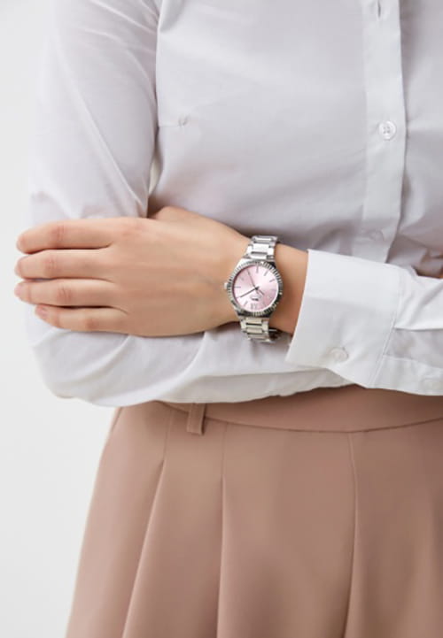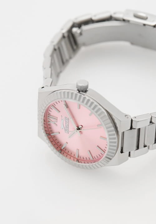Женские кварцевые часы Slazenger SL.09.2304.3.06 — это элегантный и стильный аксессуар, идеально дополняющий любой образ. Корпус и браслет выполнены из суперметалла, защищён минеральным стекломМинеральное стеклоМинеральное стекло представляет собой искусственно выращенный минерал кварца. Такое стекло отличается особой устойчивостью к повреждениям и царапинам. Уступает по некоторым качествам сапфировому стеклу.. Циферблат розового цвета оформлен в классическом стиле, стрелки оснащены люминесцентным покрытиемЛюминесцентное покрытиеПозволяет считывать показания времени в темноте. Производители наносят на стрелки, часовые индексы, безель или поверхность циферблата светонакопительный состав, дающий холодное свечение., обеспечивающим хорошую читаемость в темноте. Браслет из суперметалла фиксируется на раскладной застёжкеРаскладная застёжкаТакой тип застёжки используется только на браслетах из металла. Она никогда не раскрывается полностью, происходит разделение на 2 и более частей. Раскладывающая застёжка снизит вероятность потери часов к минимуму., обеспечивая надёжность и комфорт ношения. Водонепроницаемость 30 м позволяет использовать часы в повседневных условиях, защищая от случайных брызг и капель дождя. Модель сочетает в себе лёгкость, прочность и изысканный внешний вид.