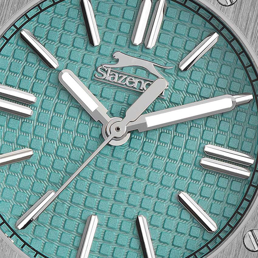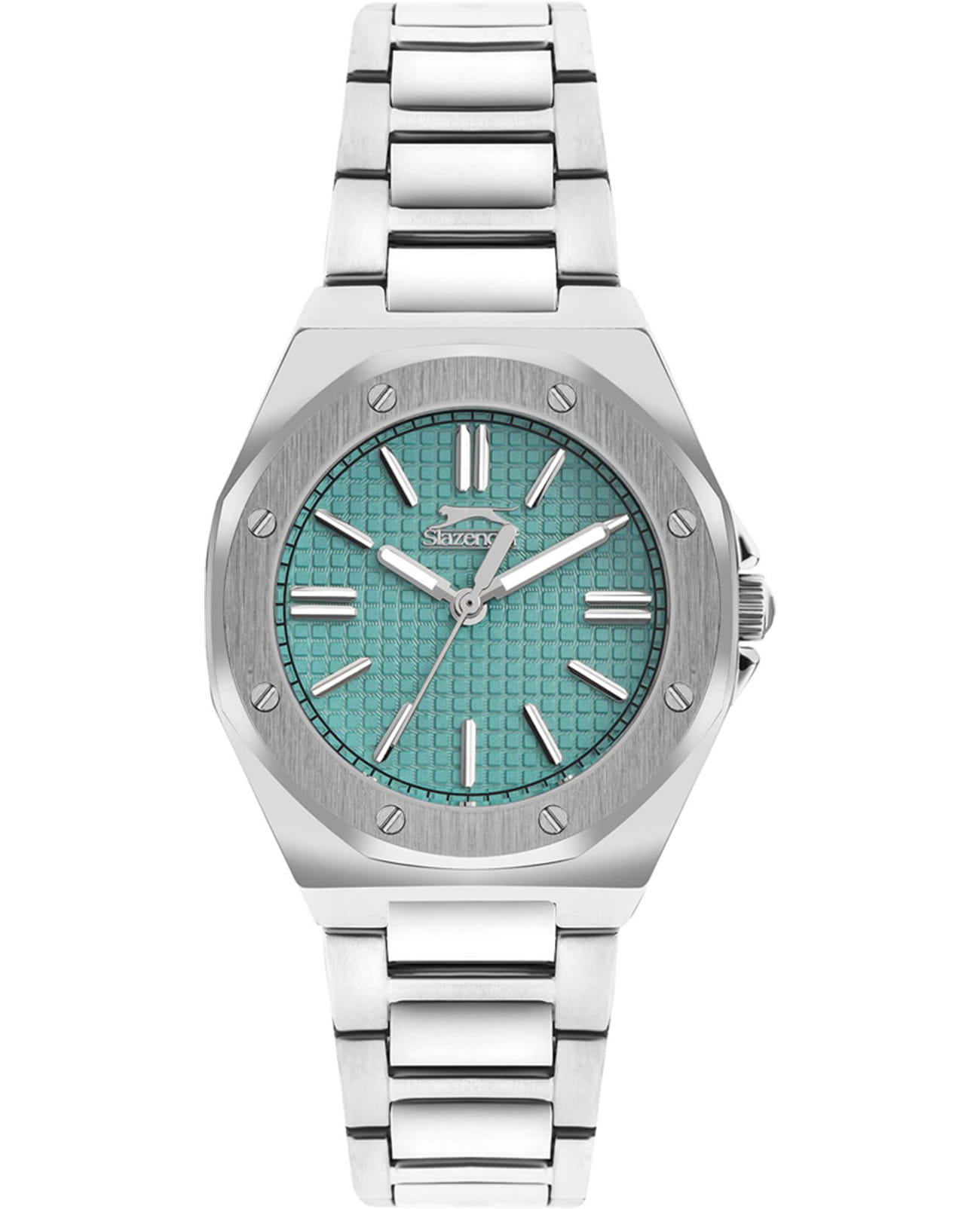 Женские кварцевые часы Slazenger SL.09.2306.3.06 — это элегантный и стильный аксессуар, идеально дополняющий любой образ. Корпус и браслет выполнены из суперметалла, защищён минеральным стекломМинеральное стеклоМинеральное стекло представляет собой искусственно выращенный минерал кварца. Такое стекло отличается особой устойчивостью к повреждениям и царапинам. Уступает по некоторым качествам сапфировому стеклу.. Циферблат бирюзового цвета оформлен в классическом стиле, стрелки оснащены люминесцентным покрытиемЛюминесцентное покрытиеПозволяет считывать показания времени в темноте. Производители наносят на стрелки, часовые индексы, безель или поверхность циферблата светонакопительный состав, дающий холодное свечение., обеспечивающим хорошую читаемость в темноте. Заводная головка снабжена защитой для повышения надёжности. Браслет из суперметалла фиксируется на раскладной застёжкеРаскладная застёжкаТакой тип застёжки используется только на браслетах из металла. Она никогда не раскрывается полностью, происходит разделение на 2 и более частей. Раскладывающая застёжка снизит вероятность потери часов к минимуму., обеспечивая удобство и безопасность ношения. Водонепроницаемость 30 м позволяет использовать часы в повседневных условиях, защищая от случайных брызг и капель дождя. Модель сочетает в себе лёгкость, прочность и изысканный внешний вид.