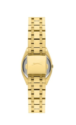 Женские кварцевые часы Slazenger SL.09.2311.3.04 — это элегантный и стильный аксессуар, идеально дополняющий любой образ. Корпус и браслет выполнены из суперметалла с IP-покрытиемIP-покрытиеМетод ионного напыления. Демонстрирует повышенную устойчивость к истиранию, окислению и химическим веществам. Под воздействием высокого давления и температуры около 1500°C молекулы металла надёжно соединяются с частицами корпуса часов., защищён минеральным стекломМинеральное стеклоМинеральное стекло представляет собой искусственно выращенный минерал кварца. Такое стекло отличается особой устойчивостью к повреждениям и царапинам. Уступает по некоторым качествам сапфировому стеклу.. Циферблат белого цвета оформлен в классическом стиле, стрелки с фигурными вырезами. Браслет золотистого цвета фиксируется на раскладной застёжкеРаскладная застёжкаТакой тип застёжки используется только на браслетах из металла. Она никогда не раскрывается полностью, происходит разделение на 2 и более частей. Раскладывающая застёжка снизит вероятность потери часов к минимуму., обеспечивая удобство и надёжность ношения. Водонепроницаемость 30 м позволяет использовать часы в повседневных условиях, защищая от случайных брызг и капель дождя. Модель сочетает в себе лёгкость, прочность и изысканный внешний вид.