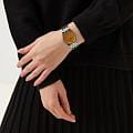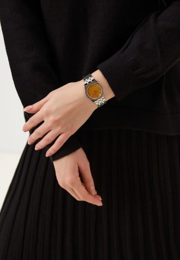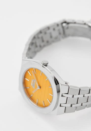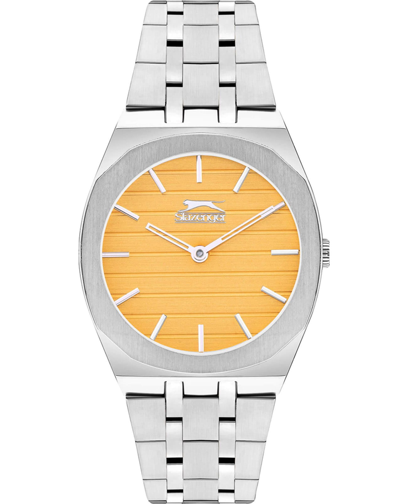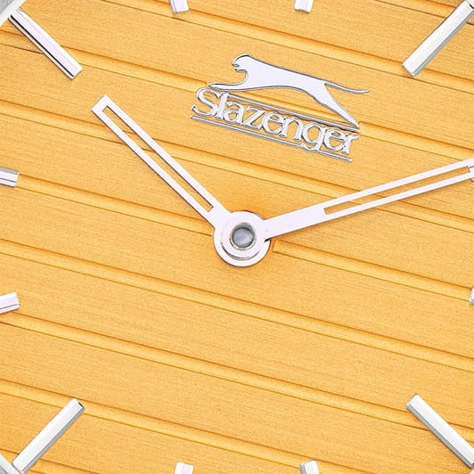 Женские кварцевые часы Slazenger SL.09.2311.3.06 — это элегантный и стильный аксессуар, идеально дополняющий любой образ. Корпус и браслет выполнены из суперметалла, защищён минеральным стекломМинеральное стеклоМинеральное стекло представляет собой искусственно выращенный минерал кварца. Такое стекло отличается особой устойчивостью к повреждениям и царапинам. Уступает по некоторым качествам сапфировому стеклу.. Циферблат жёлтого цвета оформлен в классическом стиле. Браслет из суперметалла фиксируется на раскладной застёжкеРаскладная застёжкаТакой тип застёжки используется только на браслетах из металла. Она никогда не раскрывается полностью, происходит разделение на 2 и более частей. Раскладывающая застёжка снизит вероятность потери часов к минимуму., обеспечивая удобство и надёжность ношения. Водонепроницаемость 30 м позволяет использовать часы в повседневных условиях, защищая от случайных брызг и капель дождя. Модель сочетает в себе лёгкость, прочность и изысканный внешний вид.