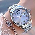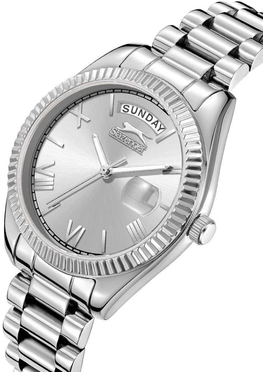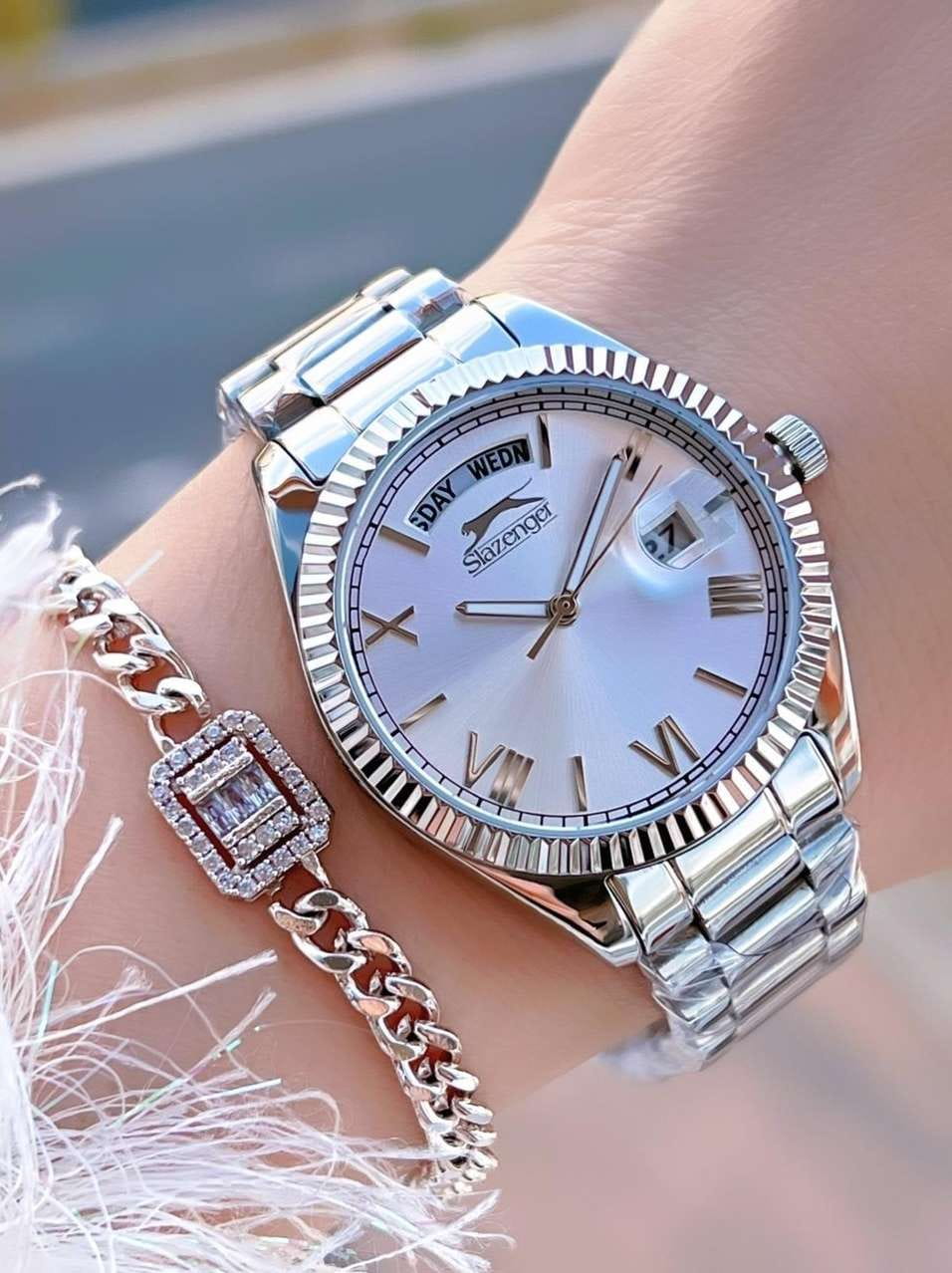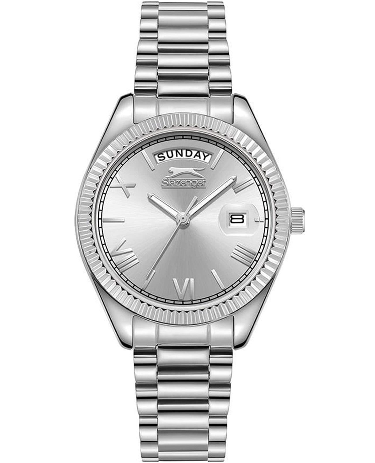 Женские элегантные наручные часы Slazenger SL.09.2338.4.01 сочетают в себе современный стиль и функциональность. Стильный корпус выполнен из суперметалла, придающий модели дополнительную прочность и элегантный внешний вид. Изысканный циферблат защищён минеральным стекломМинеральное стеклоМинеральное стекло представляет собой искусственно выращенный минерал кварца. Такое стекло отличается особой устойчивостью к повреждениям и царапинам. Уступает по некоторым качествам сапфировому стеклу., устойчивым к царапинам и повреждениям. Водонепроницаемость 3 АТМ позволяет использовать часы в повседневных условиях — при мытье рук или под лёгким дождём. Браслет из суперметалла и с раскладной застёжкойРаскладная застёжкаТакой тип застёжки используется только на браслетах из металла. Она никогда не раскрывается полностью, происходит разделение на 2 и более частей. Раскладывающая застёжка снизит вероятность потери часов к минимуму., обеспечивающий надёжную фиксацию и комфорт при ношении. Окошко даты находится в положении 3 часа. Cтрелки покрыты люминесцентным покрытиемЛюминесцентное покрытиеПозволяет считывать показания времени в темноте. Производители наносят на стрелки, часовые индексы, безель или поверхность циферблата светонакопительный состав, дающий холодное свечение. для читаемости в условиях недостаточного освещения. Эта модель идеально подходит для женщин, ценящих стиль, функциональность и надёжность в одном аксессуаре.