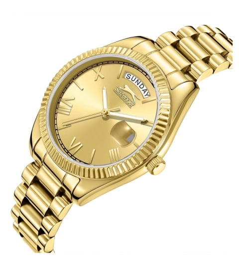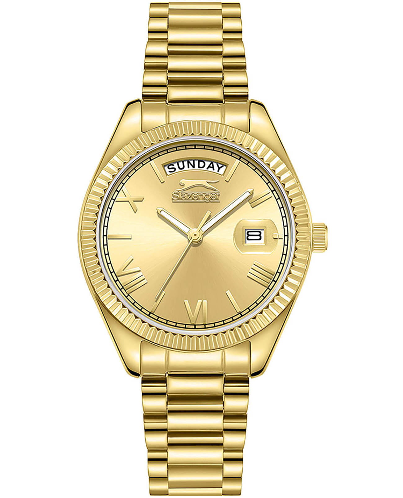 Женские элегантные наручные часы Slazenger SL.09.2338.4.09 сочетают в себе современный стиль и функциональность. Стильный корпус выполнен из суперметалла с IP-покрытиемIP-покрытиеМетод ионного напыления. Демонстрирует повышенную устойчивость к истиранию, окислению и химическим веществам. Под воздействием высокого давления и температуры около 1500°C молекулы металла надёжно соединяются с частицами корпуса часов., придающий модели дополнительную прочность и элегантный внешний вид. Изысканный циферблат защищён минеральным стекломМинеральное стеклоМинеральное стекло представляет собой искусственно выращенный минерал кварца. Такое стекло отличается особой устойчивостью к повреждениям и царапинам. Уступает по некоторым качествам сапфировому стеклу., устойчивым к царапинам и повреждениям. Водонепроницаемость 3 АТМ позволяет использовать часы в повседневных условиях — при мытье рук или под лёгким дождём. Браслет из суперметалла с IP-покрытиемIP-покрытиеМетод ионного напыления. Демонстрирует повышенную устойчивость к истиранию, окислению и химическим веществам. Под воздействием высокого давления и температуры около 1500°C молекулы металла надёжно соединяются с частицами корпуса часов. и с раскладной застёжкойРаскладная застёжкаТакой тип застёжки используется только на браслетах из металла. Она никогда не раскрывается полностью, происходит разделение на 2 и более частей. Раскладывающая застёжка снизит вероятность потери часов к минимуму., обеспечивающий надёжную фиксацию и комфорт при ношении. Окошко даты находится в положении 3 часа. Cтрелки покрыты люминесцентным покрытиемЛюминесцентное покрытиеПозволяет считывать показания времени в темноте. Производители наносят на стрелки, часовые индексы, безель или поверхность циферблата светонакопительный состав, дающий холодное свечение. для читаемости в условиях недостаточного освещения. Эта модель идеально подходит для женщин, ценящих стиль, функциональность и надёжность в одном аксессуаре.