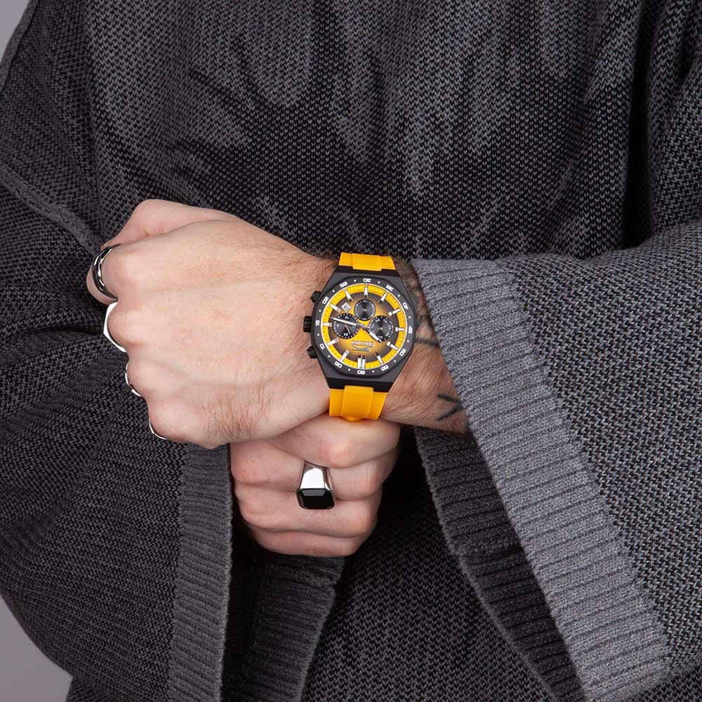 Мужские элегантные наручные часы Slazenger SL.09.2341.2.04 сочетают в себе современный стиль и функциональность. Стильный корпус выполнен из нержавеющей стали с IP-покрытиемIP-покрытиеМетод ионного напыления. Демонстрирует повышенную устойчивость к истиранию, окислению и химическим веществам. Под воздействием высокого давления и температуры около 1500°C молекулы металла надёжно соединяются с частицами корпуса часов., придающий модели дополнительную прочность и элегантный внешний вид. Изысканный циферблат защищён минеральным стекломМинеральное стеклоМинеральное стекло представляет собой искусственно выращенный минерал кварца. Такое стекло отличается особой устойчивостью к повреждениям и царапинам. Уступает по некоторым качествам сапфировому стеклу., устойчивым к царапинам и повреждениям, и дополнен вынесенными малыми циферблатами для индикации дня недели и времени в 24-часовом формате. Водонепроницаемость 5 АТМ позволяет использовать часы в повседневных условиях — при мытье рук или под лёгким дождём. Ремень из силикона со стандартной застежкой, обеспечивающий надёжную фиксацию и комфорт при ношении. Окошко даты находится в положении между 4 и 5 часами. Cтрелки и метки покрыты люминесцентным покрытиемЛюминесцентное покрытиеПозволяет считывать показания времени в темноте. Производители наносят на стрелки, часовые индексы, безель или поверхность циферблата светонакопительный состав, дающий холодное свечение. для читаемости в условиях недостаточного освещения. Эта модель идеально подходит для мужчин, ценящих стиль, функциональность и надёжность в одном аксессуаре.