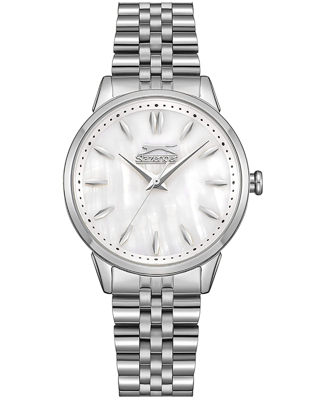 Женские кварцевые часы Slazenger SL.09.2373.3.01 – это сочетание элегантности, современного стиля и надёжности. Изящный корпус из суперметалла серебристого цвета, диаметром 34 мм и толщиной 9 мм, подчёркивает утончённость модели и делает их идеальным аксессуаром для любой ситуации – будь то деловая встреча, романтический вечер или повседневные выходы. Циферблат надёжно защищён минеральным стекломМинеральное стеклоМинеральное стекло представляет собой искусственно выращенный минерал кварца. Такое стекло отличается особой устойчивостью к повреждениям и царапинам. Уступает по некоторым качествам сапфировому стеклу., которое устойчиво к механическим повреждениям и сохраняет кристальную прозрачность. Браслет из суперметалла удобно облегает запястье и фиксируется с помощью раскладной застёжкиРаскладная застёжкаТакой тип застёжки используется только на браслетах из металла. Она никогда не раскрывается полностью, происходит разделение на 2 и более частей. Раскладывающая застёжка снизит вероятность потери часов к минимуму., обеспечивая надёжность и комфорт в повседневном ношении. Утончённый стиль, внимание к деталям и практичность делают эту модель идеальным выбором для современных женщин, ценящих эстетику и функциональность. Водозащита до 30 метров позволит защитить корпус от случайных брызг или капель дождя.