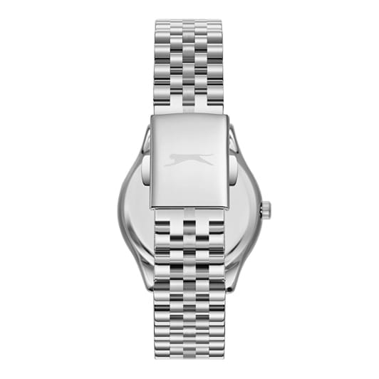 Женские кварцевые часы Slazenger — это элегантный и функциональный аксессуар. Корпус диаметром 34 мм и толщиной 11 мм выполнен из суперметалла. Циферблат серебристого цвета оформлен индексами и стрелками, украшен фианитами. Циферблат защищён минеральным стекломМинеральное стеклоМинеральное стекло представляет собой искусственно выращенный минерал кварца. Такое стекло отличается особой устойчивостью к повреждениям и царапинам. Уступает по некоторым качествам сапфировому стеклу.. Механизм — кварцевый. Часы оснащены индикацией дня недели, даты и 12/24-часового формата времени. Часы оснащены браслетом из суперметалла с раскладной застёжкойРаскладная застёжкаТакой тип застёжки используется только на браслетах из металла. Она никогда не раскрывается полностью, происходит разделение на 2 и более частей. Раскладывающая застёжка снизит вероятность потери часов к минимуму.. Водонепроницаемость 50 м позволяет использовать часы в повседневных условиях. Гарантия — 12 месяцев. Идеальный выбор для тех, кто ценит стиль, функциональность и качество.