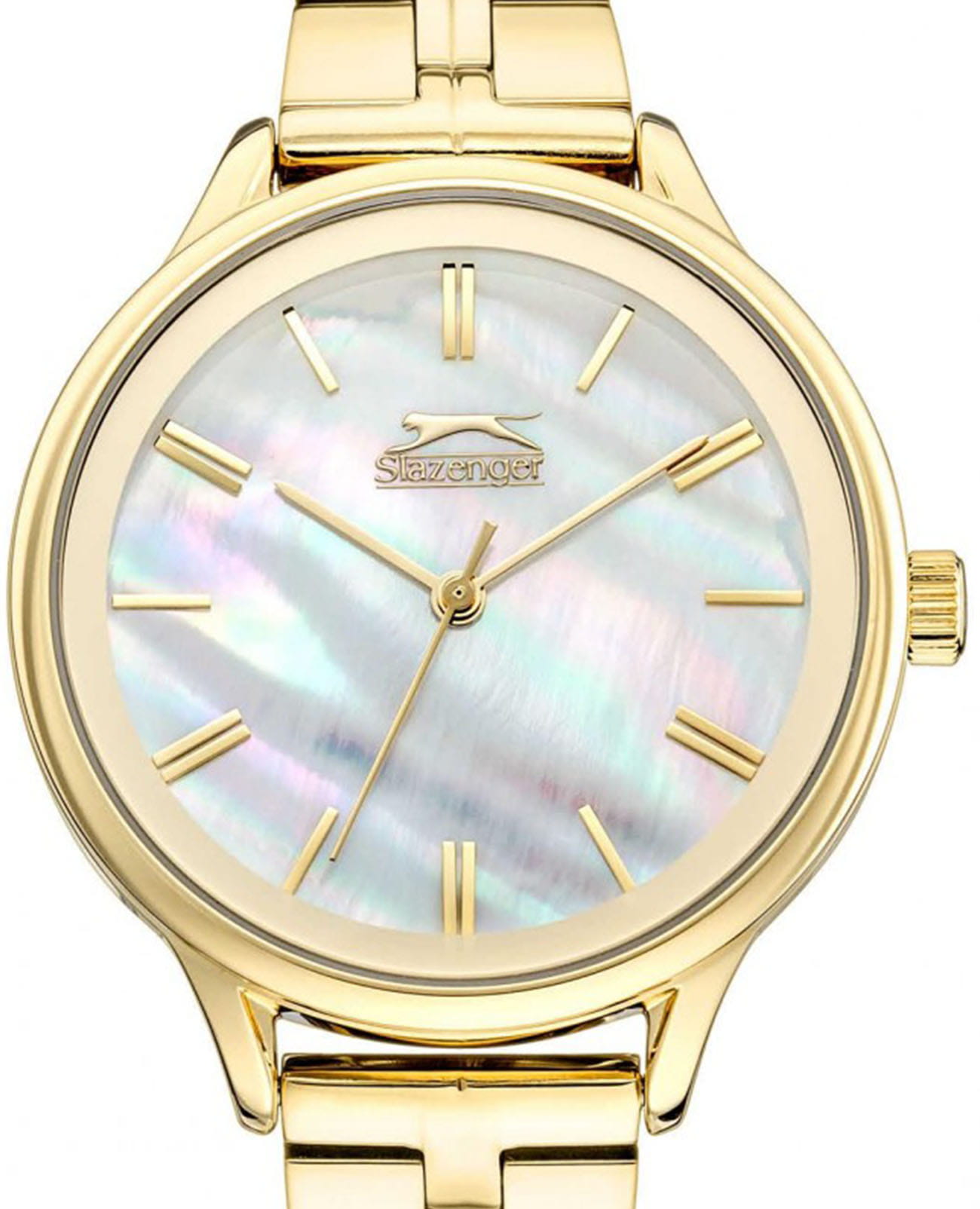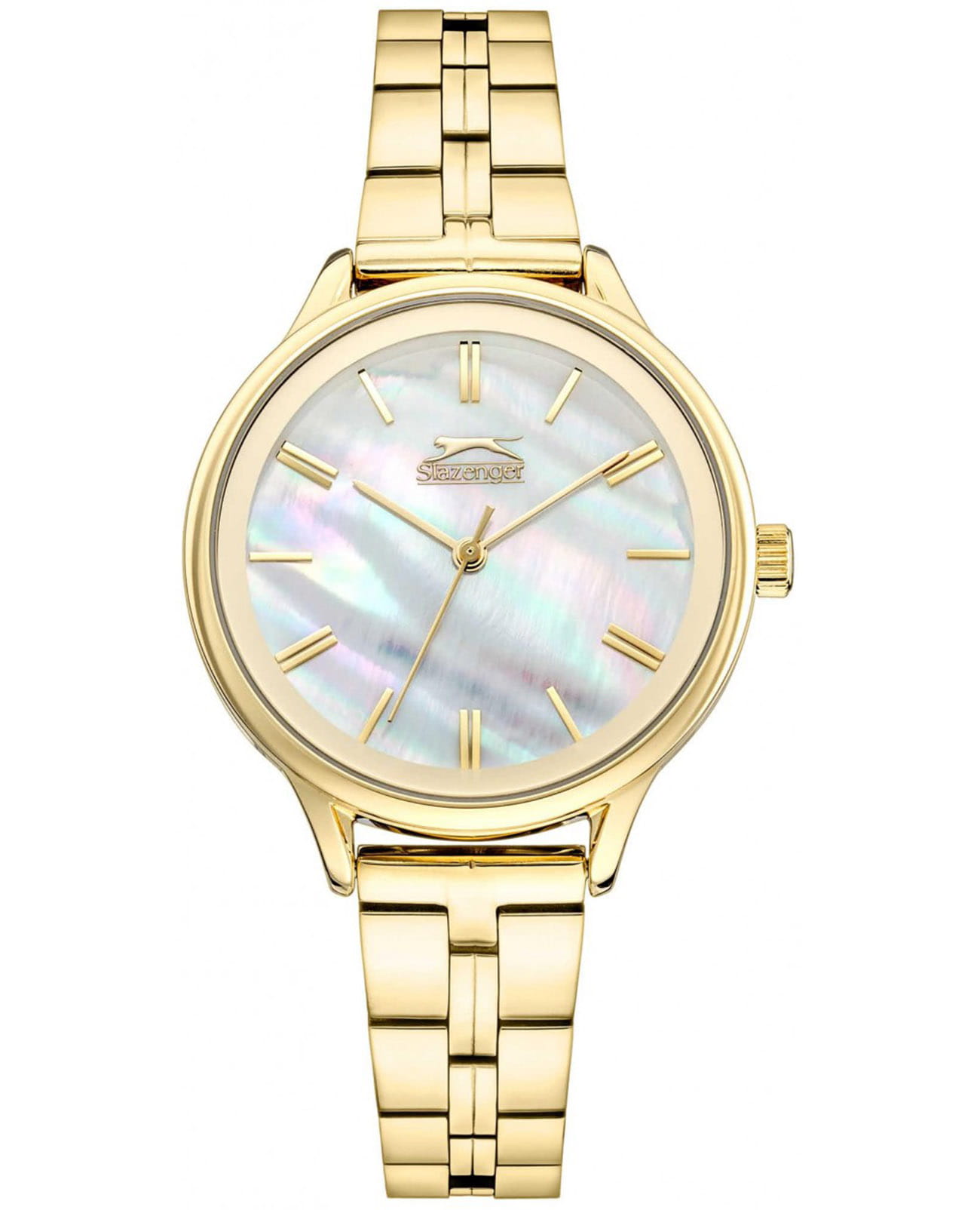 Женские кварцевые часы Slazenger — это элегантный аксессуар с перламутровым циферблатом. Корпус диаметром 35 мм и толщиной 9 мм выполнен из суперметалла с IP-покрытиемIP-покрытиеМетод ионного напыления. Демонстрирует повышенную устойчивость к истиранию, окислению и химическим веществам. Под воздействием высокого давления и температуры около 1500°C молекулы металла надёжно соединяются с частицами корпуса часов.. Циферблат перламутрового цвета оформлен индексами и стрелками. Циферблат защищён минеральным стекломМинеральное стеклоМинеральное стекло представляет собой искусственно выращенный минерал кварца. Такое стекло отличается особой устойчивостью к повреждениям и царапинам. Уступает по некоторым качествам сапфировому стеклу.. Механизм — кварцевый калибр Miyota 2035. Часы оснащены браслетом из суперметалла на раскладной застёжкеРаскладная застёжкаТакой тип застёжки используется только на браслетах из металла. Она никогда не раскрывается полностью, происходит разделение на 2 и более частей. Раскладывающая застёжка снизит вероятность потери часов к минимуму.. Водонепроницаемость 30 м позволяет использовать часы в повседневных условиях. Идеальный выбор для тех, кто ценит лаконичность и качество.