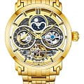 Мужские наручные часы Stührling Original 371B.03 из коллекции Luciano Automatic Skeleton сочетают в себе классический дизайн и современные технологии . Модель оснащена механическим механизмом с автоподзаводом, что гарантирует точность хода без необходимости ручного завода . Корпус часов диаметром 47 мм изготовлен из нержавеющей стали с PVD-покрытиемPVDУльтратонкое покрытие наносится в технике вакуумного напыления, сочетает в себе нитрид титана особой прочности со слоем золота или оксида хрома. Несёт в себе декоративную или защитную функцию. под золото, что подчеркивает элегантность модели . Защиту циферблата обеспечивает прочное стекло KrysternaKrysternaKrysterna — инновационное стекло для наручных часов. Благодаря уникальной структуре, Krysterna объединяет ключевые преимущества двух материалов: твердость сапфира, защищающую от царапин, и гибкость минерального стекла, обеспечивающую устойчивость к деформациям. Такая комбинация делает его идеальным решением для часов, подверженных экстремальным нагрузкам, сохраняя при этом оптическую прозрачность., известное своей устойчивостью к царапинам и механическим повреждениям . Циферблат выполнен в стиле , что позволяет наблюдать за работой внутреннего механизма и демонстрирует сложность инженерного решения . Такой дизайн делает модель не только функциональной, но и стильной, привлекая внимание ценителей сложных технических решений. Браслет из того же материала на раскладной застёжкеРаскладная застёжкаТакой тип застёжки используется только на браслетах из металла. Она никогда не раскрывается полностью, происходит разделение на 2 и более частей. Раскладывающая застёжка снизит вероятность потери часов к минимуму.. Водонепроницаемость модели достигает 5 атмосфер (50 метров), что позволяет использовать их в повседневных условиях, включая контакт с водой, например, при мытье рук или дожде . Заводная головка с системой завинчивания обеспечивает дополнительную защиту механизма от внешних воздействий.