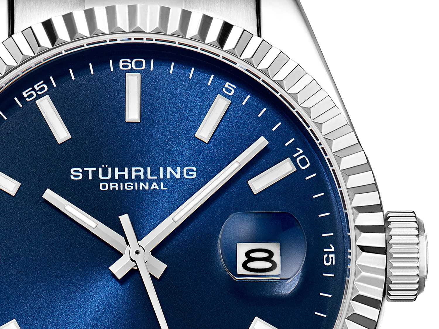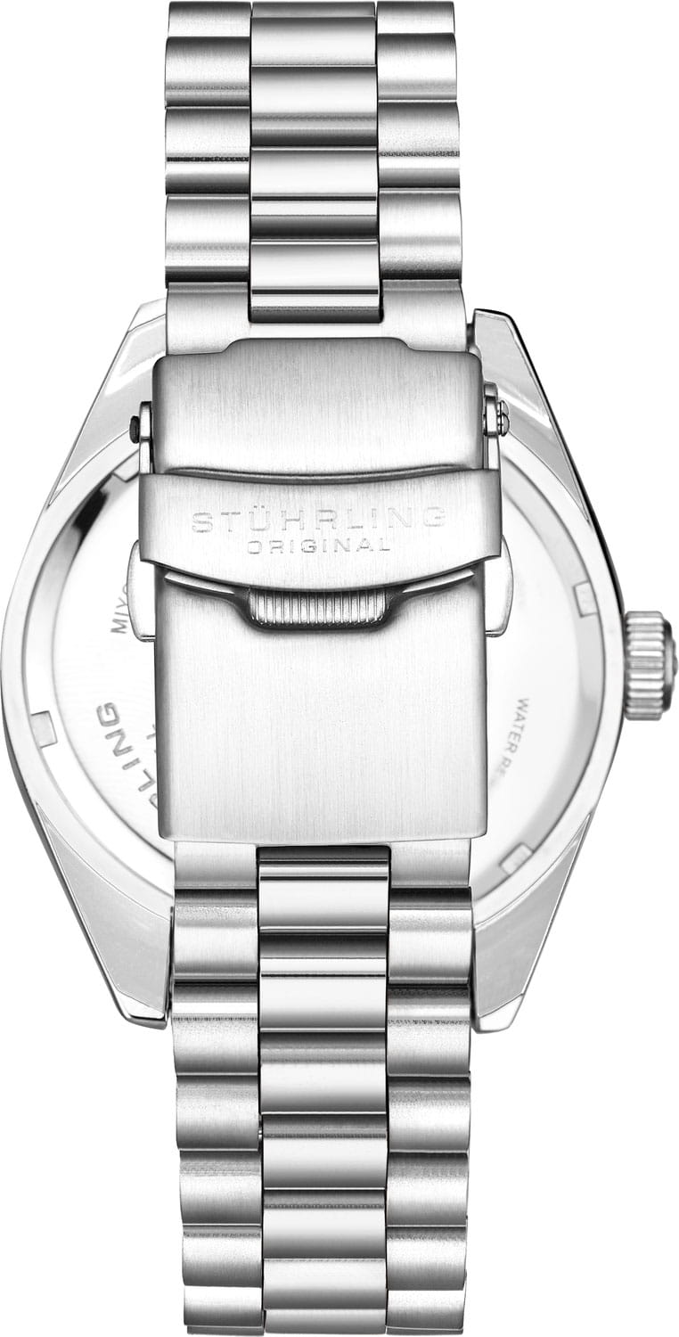 Stuhrling 3935.2 — элегантные мужские часы, объединяющие строгую классику и современную функциональность. Корпус из нержавеющей стали создают ощущение монолитной надёжности, а глубокий циферблат придаёт модели выразительность и характер. Стальной браслет на раскладной застёжкеРаскладная застёжкаТакой тип застёжки используется только на браслетах из металла. Она никогда не раскрывается полностью, происходит разделение на 2 и более частей. Раскладывающая застёжка снизит вероятность потери часов к минимуму. обеспечивает комфорт. Крупные метки и стрелки с люминесцентным покрытиемЛюминесцентное покрытиеПозволяет считывать показания времени в темноте. Производители наносят на стрелки, часовые индексы, безель или поверхность циферблата светонакопительный состав, дающий холодное свечение. обеспечивают идеальную читаемость даже в темноте. На позиции «3 часов» расположено аккуратное окно даты, подчёркивающее симметрию дизайна. Прочное стекло Krysterna защищает циферблат от царапин, а надёжный кварцевый механизм гарантирует стабильную точность. Stuhrling — выбор уверенного мужчины, ценящего сочетание функциональности, лаконичного дизайна и безупречной отделки.