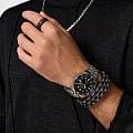 Stuhrling 4045.1 — надёжные мужские механические часы в стиле профессионального дайвера, сочетающие мощный дизайн и техническую точность. Корпус из нержавеющей стали с однонаправленным безелемБезельВнешний ободок, закрепляющий стекло. В спортивных часах так называется поворотное кольцо с делениями на циферблате, выполняет роль таймера – замеряет отрезки времени на шкале. Неподвижный безель – элемент декора. Однонаправленно вращающийся безель на дайверских часах позволяет фиксировать моменты погружения и выныривания на поверхность. с PVD-покрытиемPVDУльтратонкое покрытие наносится в технике вакуумного напыления, сочетает в себе нитрид титана особой прочности со слоем золота или оксида хрома. Несёт в себе декоративную или защитную функцию. и крупной заводной головкой подчёркивает инструментальный характер модели. Циферблат с контрастными стрелками и метками, покрытыми люминесцентным составомЛюминесцентное покрытиеПозволяет считывать показания времени в темноте. Производители наносят на стрелки, часовые индексы, безель или поверхность циферблата светонакопительный состав, дающий холодное свечение., обеспечивает отличную читаемость даже под водой. Прочное стекло KrysternaKrysternaKrysterna — инновационное стекло для наручных часов. Благодаря уникальной структуре, Krysterna объединяет ключевые преимущества двух материалов: твердость сапфира, защищающую от царапин, и гибкость минерального стекла, обеспечивающую устойчивость к деформациям. Такая комбинация делает его идеальным решением для часов, подверженных экстремальным нагрузкам, сохраняя при этом оптическую прозрачность. защищает от царапин, а стальной браслет с раскладной застёжкойРаскладная застёжкаТакой тип застёжки используется только на браслетах из металла. Она никогда не раскрывается полностью, происходит разделение на 2 и более частей. Раскладывающая застёжка снизит вероятность потери часов к минимуму. обеспечивает надёжную фиксацию и комфортное прилегание к запястью. Stuhrling — выбор для тех, кто ценит функциональность, стиль и уверенность в любой среде.