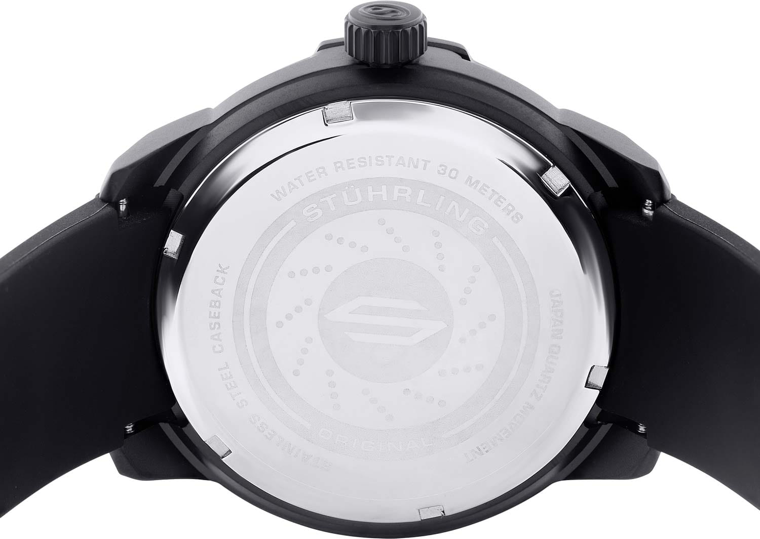 Stuhrling 984.02 — эффектные мужские часы с ярким спортивным характером и футуристичным дизайном. Корпус из нержавеющей стали с чёрным PVD-покрытиемPVDУльтратонкое покрытие наносится в технике вакуумного напыления, сочетает в себе нитрид титана особой прочности со слоем золота или оксида хрома. Несёт в себе декоративную или защитную функцию. придаёт модели выразительный матовый оттенок и повышенную устойчивость к царапинам. Циферблат выполнен в виде стилизованного ротора, где акценты насыщенного цвета создают ощущение движения и энергии. Прочный силиконовый ремешок обеспечивает комфорт и долговечность, а стекло KrysternaKrysternaKrysterna — инновационное стекло для наручных часов. Благодаря уникальной структуре, Krysterna объединяет ключевые преимущества двух материалов: твердость сапфира, защищающую от царапин, и гибкость минерального стекла, обеспечивающую устойчивость к деформациям. Такая комбинация делает его идеальным решением для часов, подверженных экстремальным нагрузкам, сохраняя при этом оптическую прозрачность. надёжно защищает поверхность от повреждений. Stuhrling — часы для тех, кто выбирает технологичный стиль и мощную эстетику в каждой детали.