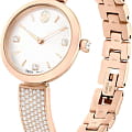 Часы Swarovski 5671196 – это воплощение изысканного дизайна и функциональности, созданное для тех, кто ценит красоту и точность. Произведенные в Швейцарии, эти кварцевые часы представлены в элегантном корпусе с безелемБезельВнешний ободок, закрепляющий стекло. В спортивных часах так называется поворотное кольцо с делениями на циферблате, выполняет роль таймера – замеряет отрезки времени на шкале. Неподвижный безель – элемент декора. Однонаправленно вращающийся безель на дайверских часах позволяет фиксировать моменты погружения и выныривания на поверхность. из нержавеющей стали с золотистым PVDPVDУльтратонкое покрытие наносится в технике вакуумного напыления, сочетает в себе нитрид титана особой прочности со слоем золота или оксида хрома. Несёт в себе декоративную или защитную функцию. покрытием. Под минеральным стекломМинеральное стеклоМинеральное стекло представляет собой искусственно выращенный минерал кварца. Такое стекло отличается особой устойчивостью к повреждениям и царапинам. Уступает по некоторым качествам сапфировому стеклу. открывается белый циферблат с изящным узором Sunray, дополненный логотипом Swarovski в виде лебедя на 12 часах и кристаллами на отметках 3, 6 и 9 часов. Отсутствие секундной стрелки подчеркивает минимализм и утонченность дизайна. Заводная головка украшена кристаллом круглой огранки, добавляющим блеска и завершенности образу. Стальной браслет с золотистым PVDPVDУльтратонкое покрытие наносится в технике вакуумного напыления, сочетает в себе нитрид титана особой прочности со слоем золота или оксида хрома. Несёт в себе декоративную или защитную функцию. покрытием декорирован прозрачными кристаллами Swarovski, создающими неповторимый мерцающий эффект, а ювелирная застежка обеспечивает надежность и комфорт. Водозащита 50WR делает их устойчивыми к влаге, позволяя наслаждаться стильным аксессуаром в любых условиях.