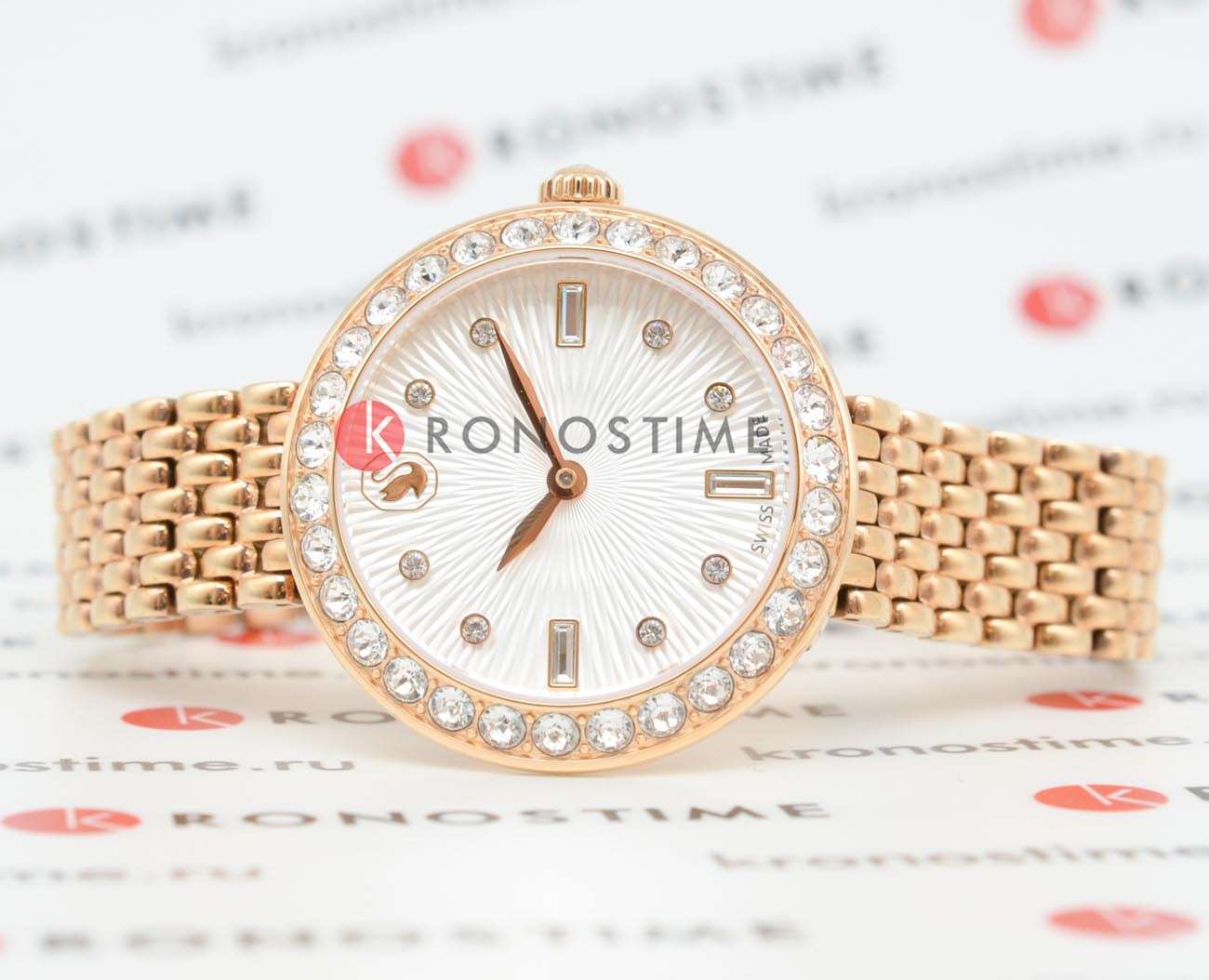 Часы Swarovski 5672981 – это воплощение изысканного дизайна и функциональности, созданное для тех, кто ценит красоту и точность. Стальной круглый корпус имеет красивую отделку PVDPVDУльтратонкое покрытие наносится в технике вакуумного напыления, сочетает в себе нитрид титана особой прочности со слоем золота или оксида хрома. Несёт в себе декоративную или защитную функцию. покрытием оттенка розового золота и оснащен безелемБезельВнешний ободок, закрепляющий стекло. В спортивных часах так называется поворотное кольцо с делениями на циферблате, выполняет роль таймера – замеряет отрезки времени на шкале. Неподвижный безель – элемент декора. Однонаправленно вращающийся безель на дайверских часах позволяет фиксировать моменты погружения и выныривания на поверхность., украшенным паве из тридцати мерцающих кристаллов. Под минеральным стекломМинеральное стеклоМинеральное стекло представляет собой искусственно выращенный минерал кварца. Такое стекло отличается особой устойчивостью к повреждениям и царапинам. Уступает по некоторым качествам сапфировому стеклу. открывается белый циферблат дополненный логотипом Swarovski в виде лебедя на 12 часах и кристаллами на отметках 3, 6 и 9 часов. Отсутствие секундной стрелки подчеркивает минимализм и утонченность дизайна. Рифленая заводная головка также украшена сверкающим кристаллом круглой огранки. Стальной браслет с отделкой PVDPVDУльтратонкое покрытие наносится в технике вакуумного напыления, сочетает в себе нитрид титана особой прочности со слоем золота или оксида хрома. Несёт в себе декоративную или защитную функцию. покрытием цвета розового золота и застежкой «бабочка»Застёжка "бабочка"Такой вид застёжки дополняется предохранителями, помогающими избежать случайного раскрытия браслета. Обладают изящным исполнением. . Водозащита 50WR делает их устойчивыми к влаге, позволяя наслаждаться стильным аксессуаром в любых условиях.