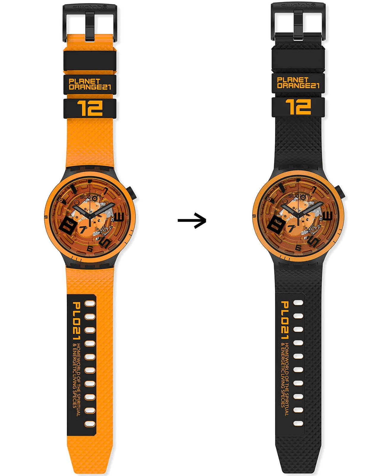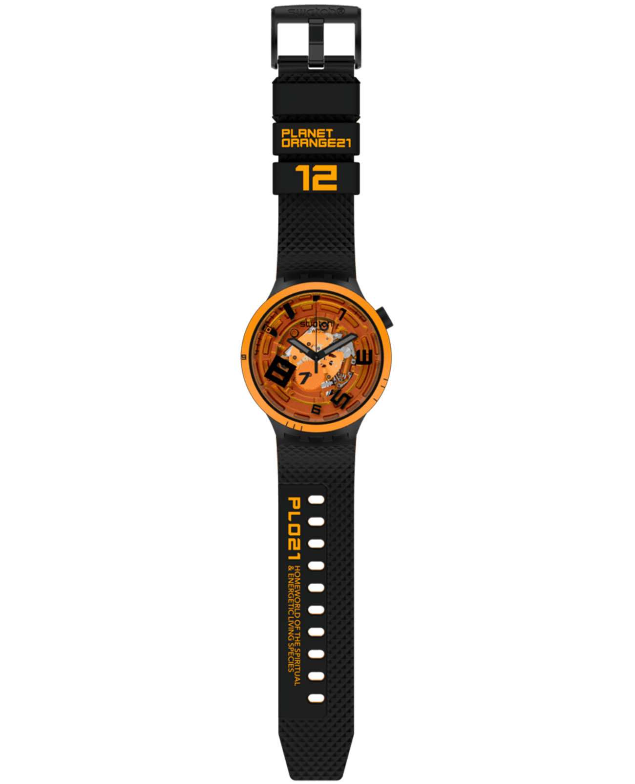Часы Swatch SB01B127 — это стильный и современный аксессуар для тех, кто ценит лёгкость и комфорт. Часы идеально подойдут как для мужчин, так и для женщин. Модель идет в комплекте с двумя ремешками: матовый силиконовый ремешок в смелом сочетании черного и оранжевого цвета, а второй — в специальной упаковке предназначен для дальнейшей смены образа. Прозрачный циферблат с разноцветным принтом позволяет сделать акцент на светящихся в темноте стрелках. Особым элементов этих часов является цифра семь, размещенная на декоративном колесике механизма. На часовую, минутную стрелки нанесено люминесцентное покрытиеЛюминесцентное покрытиеПозволяет считывать показания времени в темноте. Производители наносят на стрелки, часовые индексы, безель или поверхность циферблата светонакопительный состав, дающий холодное свечение., которое светится в темноте, создавая необычное изображение. Водозащита 30 метров делает часы практичными для повседневного использования. Эти часы подойдут для повседневного ношения и станут ярким акцентом в вашем наряде.