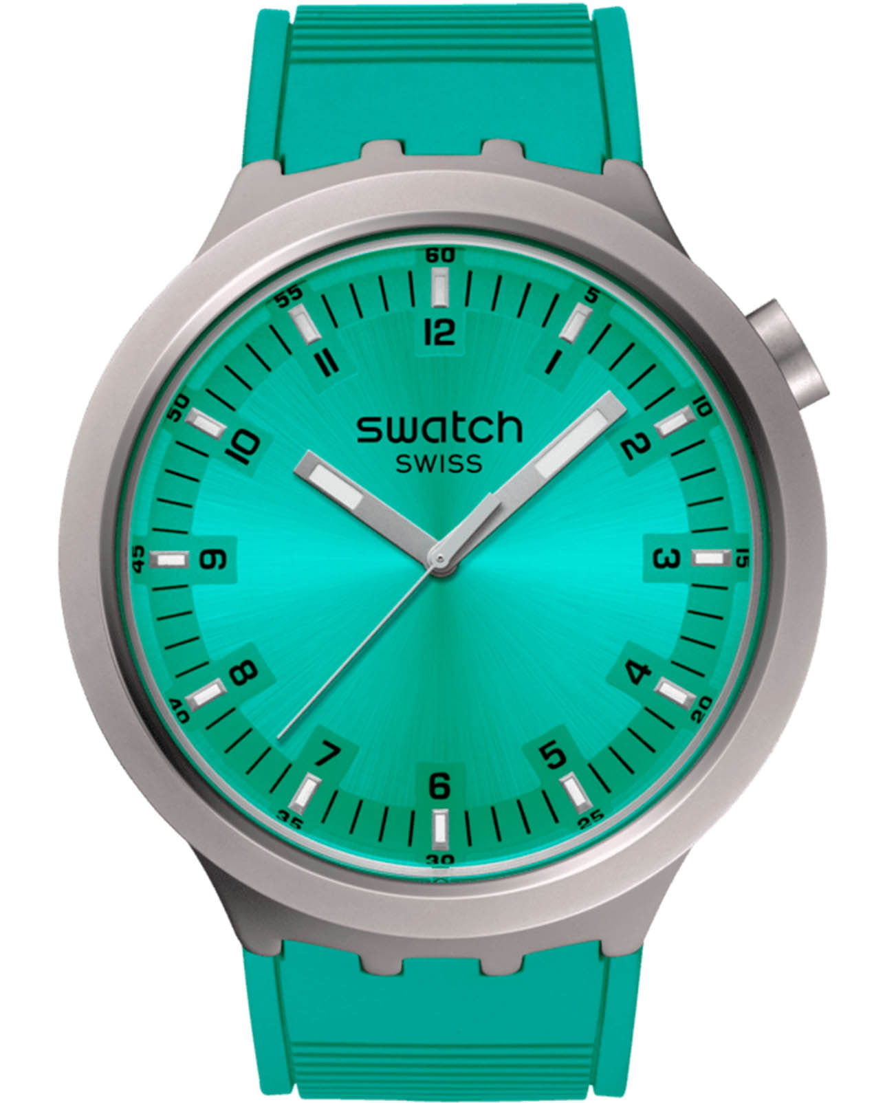 Часы Swatch SB07S100 — это стильный и современный аксессуар для тех, кто ценит лёгкость и комфорт. Часы идеально подойдут как для мужчин, так и для женщин. На бирюзовом циферблате с радиальной полировкой этих крупных часов размещены светящиеся в темноте индексы, черные цифры и минутная шкала, серебристые стрелки со светящимися в темноте благодаря люминесцентному покрытиюЛюминесцентное покрытиеПозволяет считывать показания времени в темноте. Производители наносят на стрелки, часовые индексы, безель или поверхность циферблата светонакопительный состав, дающий холодное свечение., отметками на минутной и часовой. Матированные методом пескоструйной обработки корпус из нержавеющей стали эффектно контрастируют с фактурным бирюзовым ремешком с тренчиками в тон и стальной полупряжкой. Водозащита 30 метров делает часы практичными для повседневного использования. Эти часы подойдут для повседневного ношения и станут ярким акцентом в вашем наряде.