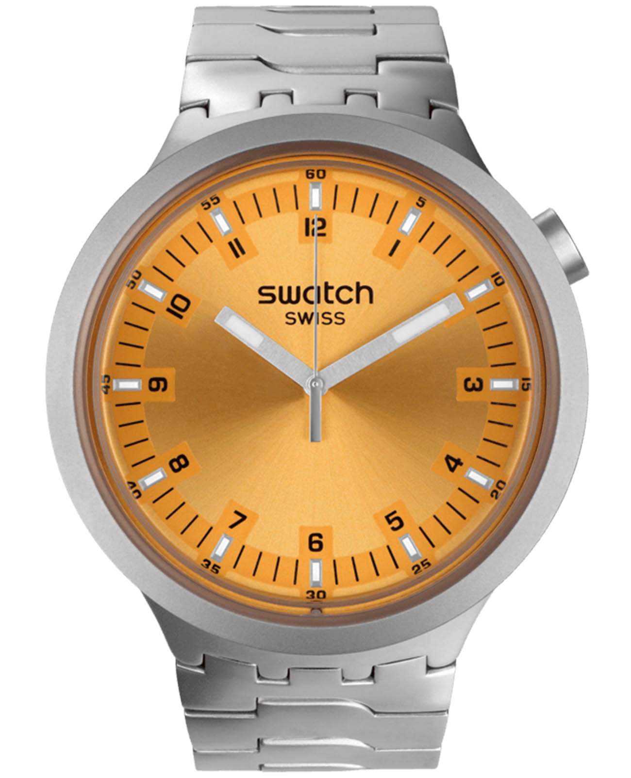 Часы Swatch SB07S103G — это стильный и современный аксессуар для тех, кто ценит лёгкость и комфорт. Часы идеально подойдут как для мужчин, так и для женщин. Эти большие часы из нержавеющей стали имеют циферблат янтарного цвета c радиальной полировкой, черным принтом и серыми светящимися в темноте стрелками благодаря люминесцентному покрытиюЛюминесцентное покрытиеПозволяет считывать показания времени в темноте. Производители наносят на стрелки, часовые индексы, безель или поверхность циферблата светонакопительный состав, дающий холодное свечение.. Дизайн часов дополняют регулируемый браслет с застёжкой «бабочка»Застёжка "бабочка"Такой вид застёжки дополняется предохранителями, помогающими избежать случайного раскрытия браслета. Обладают изящным исполнением. и корпус из нержавеющей стали с пескоструйной обработкой. Водозащита 30 метров делает часы практичными для повседневного использования. Эти часы подойдут для повседневного ношения и станут ярким акцентом в вашем наряде.