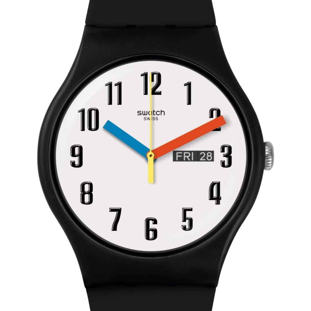 Часы Swatch SO29B705 —  стильный и надежный аксессуар. Современный взгляд на классику. ELEMENTARY IN BIOSOURCED возвращается к основам с первичными цветами на циферблате, который также оснащен стеклом из биоматериала. Синяя стрелка часов, красная стрелка минут и желтая стрелка секунд придают часам яркий акцент. Корпус, ремешок, петля и пряжка выполнены из однородного матового черного биоматериала. Внутри часов установлен надежный кварцевый механизм, который обеспечивает точность хода. Эти часы водонепроницаемы до 30 метров, что позволяет не беспокоиться о случайных брызгах или дождевых каплях. Swatch SO29B705 — это идеальный выбор для тех, кто ценит сочетание стиля, комфорта и функциональности в одном аксессуаре.