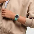 Мужские наручные часы Swatch HINT OF MINT SO29L103 — это стильный и современный аксессуар для тех, кто ценит лёгкость и комфорт. Корпус выполнен из пластика, диаметром 41 мм и толщиной 9.85 мм, что обеспечивает долговечность и утончённый внешний вид. Циферблат защищён органическим стеклом, устойчивым к повреждениям. Модель оснащена кварцевым механизмом, обеспечивающим высокую точность хода. Часовая и минутная стрелки с люминесцентным покрытиемЛюминесцентное покрытиеПозволяет считывать показания времени в темноте. Производители наносят на стрелки, часовые индексы, безель или поверхность циферблата светонакопительный состав, дающий холодное свечение.. Силиконовый текстурированный матово-бирюзовый ремешок на стандартной застёжке гармонично дополняет корпус и обеспечивает комфортное ношение. Водозащита 30 метров позволит защитить корпус от случайных брызг или капель дождя. Эти часы подойдут для повседневного ношения и станут ярким акцентом в вашем наряде.
