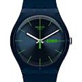 Часы Swatch New Gent Biosourced SO29N704  — это стильный и современный аксессуар, который идеально подходит для повседневного ношения. Циферблат этих часов, выполненный в темно-синем цвете с солнечной обработкой, украшен зелеными метками для часов и зеленым окном даты и дня на 3 часах. Серебристые стрелки для часов и минут с люминесцентным покрытиемЛюминесцентное покрытиеПозволяет считывать показания времени в темноте. Производители наносят на стрелки, часовые индексы, безель или поверхность циферблата светонакопительный состав, дающий холодное свечение. - светятся в темноте. Часы завершаются матовым прозрачным корпусом темно-синего цвета, матовым темно-синим ремешком с соответствующей петлей и прозрачной пряжкой. Внутри часов установлен надежный кварцевый механизм, который обеспечивает точность хода. Эти часы водонепроницаемы до 30 метров, что позволяет не беспокоиться о случайных брызгах или дождевых каплях. Ремешок часов  выполнен из биоматериала и имеет регулируемую длину, застежка классическая из пластика. Swatch SO29N704 — это идеальный выбор для тех, кто ценит сочетание стиля, комфорта и функциональности в одном аксессуаре.