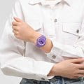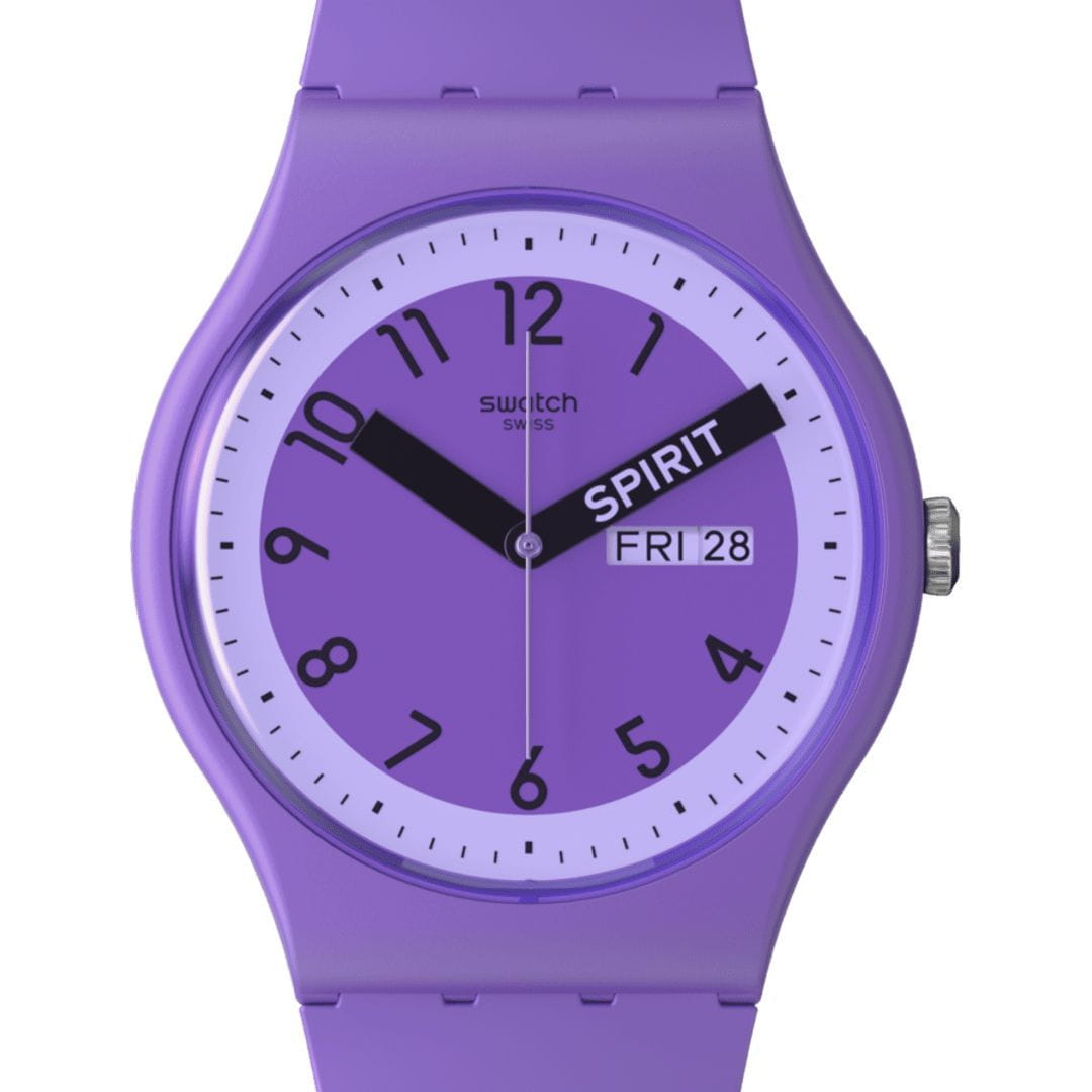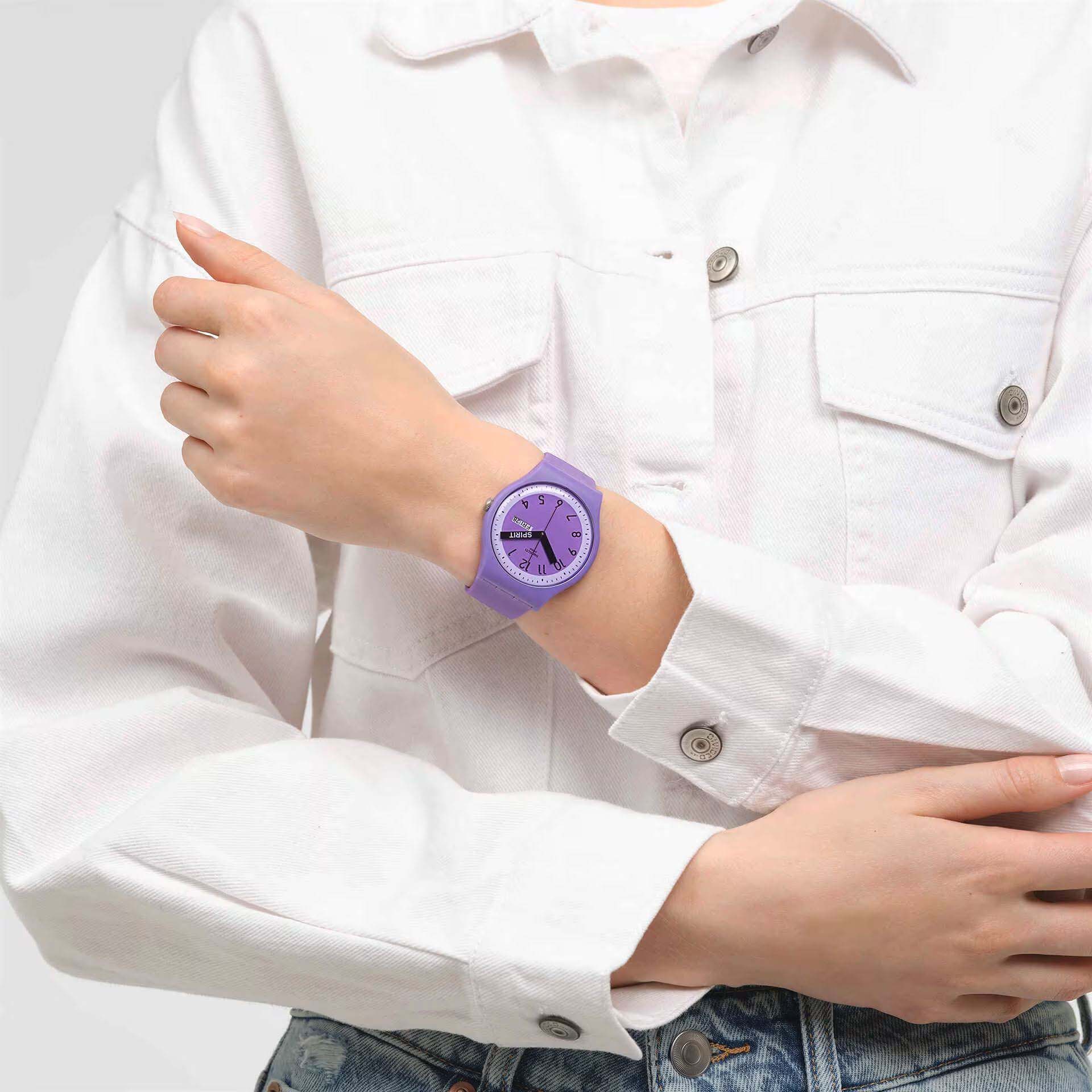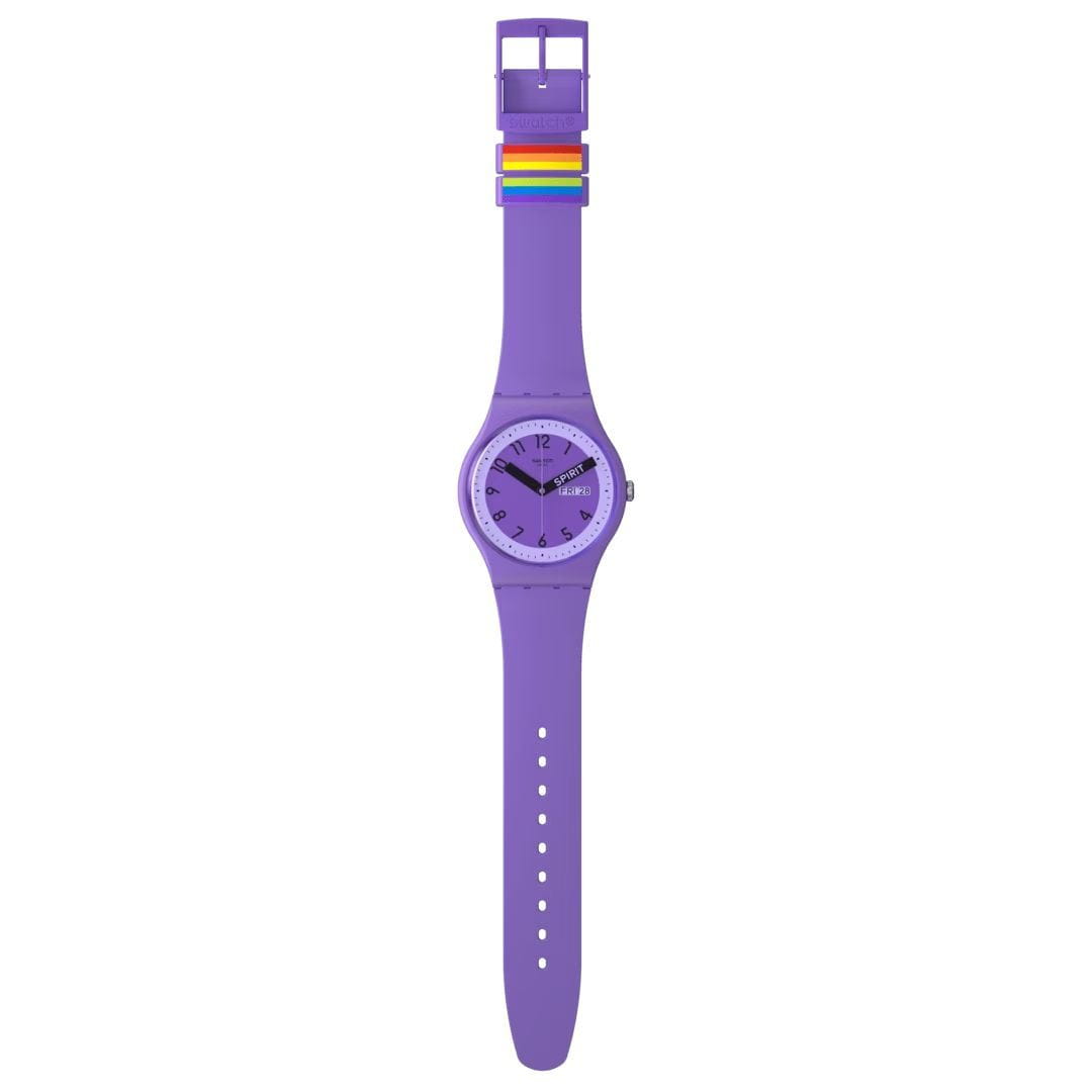 Часы Swatch SO29V700 —  стильный и надежный аксессуар.  Эти часы Swatch Pride 2023 Special имеют фиолетовый циферблат и фиолетовое стекло из биоматериала в корпусе из тех же материалов. Часовая и минутная стрелки черные, при этом минутная стрелка символизирует значение фиолетового цвета в флаге Прайда: дух. Соответствующий ремешок этих фиолетовых часов включает две петли, которые, соединяясь, образуют радугу. Окошко даты и дня недели расположены на 3 часа. Ремешок силиконовый на классической застежке. Внутри часов установлен надежный кварцевый механизм, который обеспечивает точность хода. Эти часы водонепроницаемы до 30 метров, что позволяет не беспокоиться о случайных брызгах или дождевых каплях. Swatch SSO29V700 — это идеальный выбор для тех, кто ценит сочетание стиля, комфорта и функциональности в одном аксессуаре.