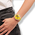 Часы Swatch SO29Z101 — стильный и надежный аксессуар. Эти позитивные часы имеют прозрачный корпус из биоматериала, желтый силиконовый ремешок, черные стрелки и индексы, принт на всей поверхности Swatch X Peanuts. Циферблат покрыт биостеклом. Мерцающий блеск модели обусловлен особым методом гравированной отделки. Ремешок на классической застежке. Внутри часов установлен надежный кварцевый механизм, который обеспечивает точность хода. Эти часы водонепроницаемы до 30 метров, что позволяет не беспокоиться о случайных брызгах или дождевых каплях. Swatch SO29Z101 — это идеальный выбор для тех, кто ценит сочетание стиля, комфорта и функциональности в одном аксессуаре.