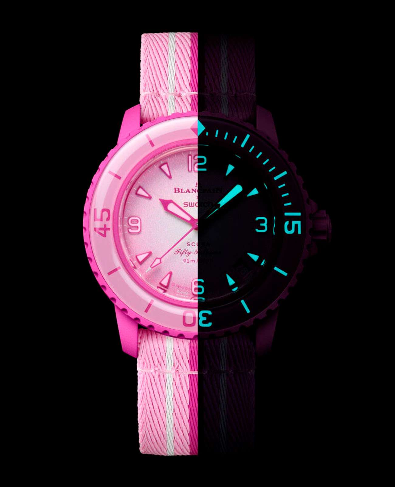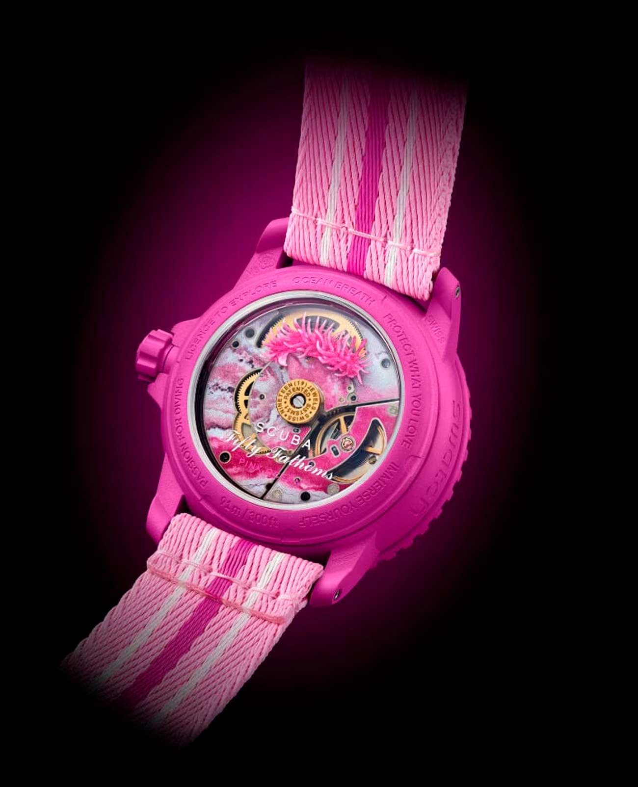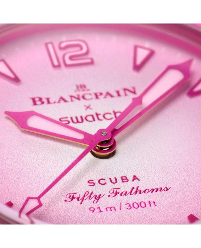 Швейцарские женские механические часы Swatch x Blancpain Pink Ocean SO35P400