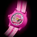 Наручные часы сочетают в себе современный дизайн и инновационные технологии. Модель обладает круглым корпусом диаметром 42,3 мм, изготовленным из биокерамикиБиокерамикаБиокерамика — это материал, который на две трети состоит из керамики, на одну треть — из биопластика. Он сочетает в себе лучшие качества обоих материалов и обладает прочностью и шелковистой на ощупь текстурой., что обеспечивает высокую прочность и устойчивость к внешним воздействиям . Толщина корпуса составляет 14,4 мм, а длина корпуса — 48,0 мм, что делает часы удобными для повседневного использования. Ремешок выполнен из ткани в стиле ремешка NATOРемешок NATOРемешок NATO — это прочный, универсальный и сменный часовой ремешок, изначально созданный для военных. Он изготовлен из нейлона или другого прочного материала и имеет уникальную конструкцию, которая позволяет часам оставаться на запястье даже в случае поломки одной из прикрепляющих точек. , гарантируя комфортное ношение и долговечность . Розовый циферблат дополнен функцией отображения лунных фаз, что добавляет модели особый шарм и уникальность. Для защиты используется органическое стекло, обеспечивающее надежную защиту от царапин и механических повреждений. Часы работают на автоматическом механизме, что гарантирует точность хода без необходимости регулярной подзаводки. Водонепроницаемость часов позволяет использовать их в повседневных условиях, однако не рекомендуется погружение на большую глубину . Дополнительные элементы дизайна, такие как заводная головка и кнопки-пушеры, выполненные из биокерамикиБиокерамикаБиокерамика — это материал, который на две трети состоит из керамики, на одну треть — из биопластика. Он сочетает в себе лучшие качества обоих материалов и обладает прочностью и шелковистой на ощупь текстурой., завершают образ этих стильных и функциональных часов.