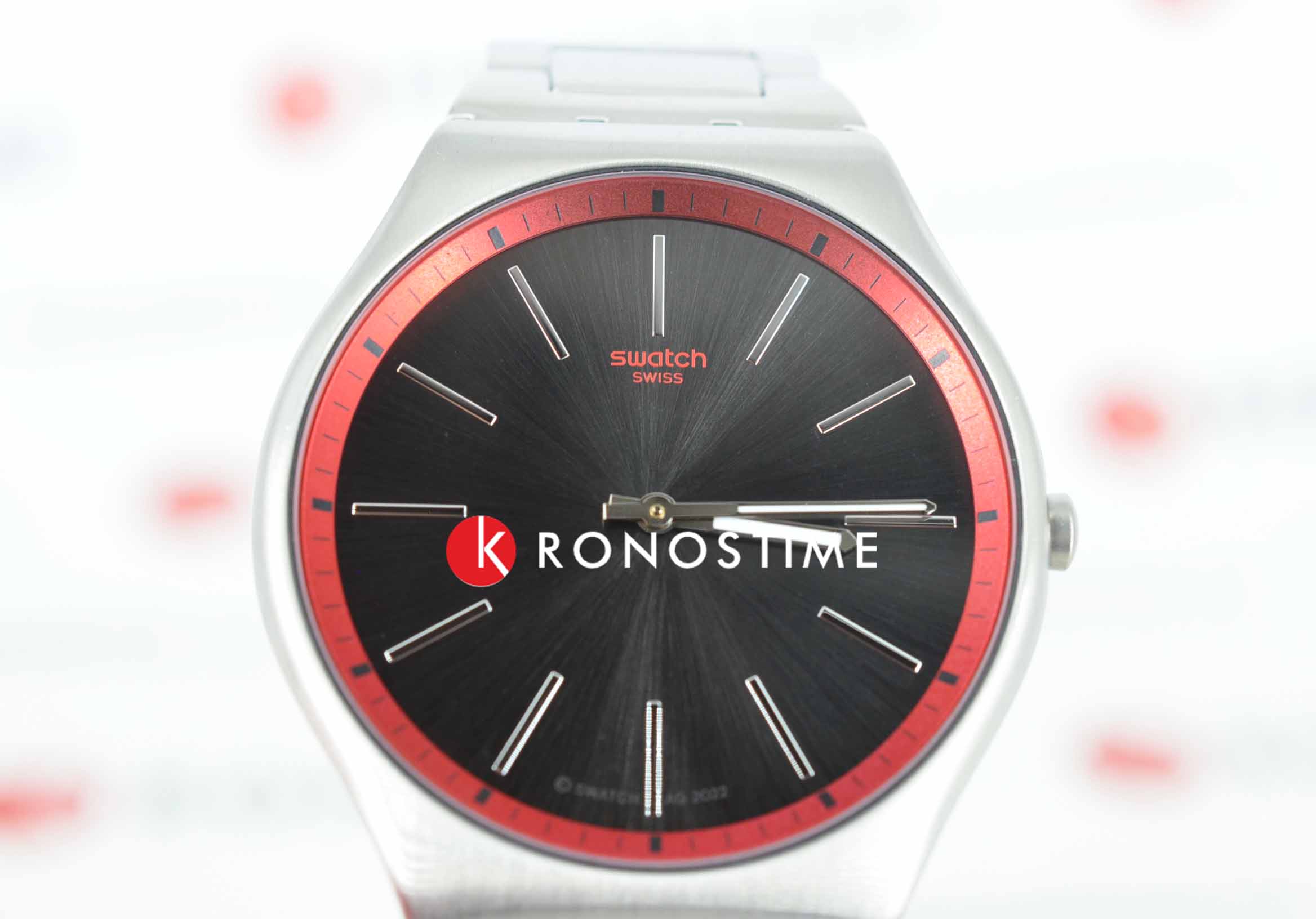 Часы Swatch SS07S129G — это стильный и современный аксессуар для тех, кто ценит лёгкость и комфорт. Часы идеально подойдут как для мужчин, так и для женщин. Эти сверхтонкие часы из нержавеющей стали никогда не утратят своей актуальности. Черный циферблат с радиальной полировкой, красным принтом и серебристыми накладными индексами Swatch прекрасно смотрится на фоне матированного корпуса этой изящной модели. Элегантный браслет дополнен застёжкой «бабочка»Застёжка "бабочка"Такой вид застёжки дополняется предохранителями, помогающими избежать случайного раскрытия браслета. Обладают изящным исполнением. . На часовую, минутную стрелки розового цвета нанесено люминесцентное покрытиеЛюминесцентное покрытиеПозволяет считывать показания времени в темноте. Производители наносят на стрелки, часовые индексы, безель или поверхность циферблата светонакопительный состав, дающий холодное свечение., которое светится в темноте, создавая необычное изображение.  Водозащита 30 метров делает часы практичными для повседневного использования. Эти часы подойдут для повседневного ношения и станут ярким акцентом в вашем наряде.