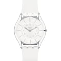 Часы Swatch SS08K102-S14 — это стильный и современный аксессуар для тех, кто ценит лёгкость и комфорт. Часы идеально подойдут как для мужчин, так и для женщин. Ультратонкие часы в прозрачном корпусе из биоматериала с блестящими серебристыми индексами на белом циферблате, помещенном под биостекло. Белый ремешок с тренчиком повторяет расцветку циферблата, а прозрачная застежка схожа с корпусом. Водозащита 30 метров делает часы практичными для повседневного использования. Эти часы подойдут для повседневного ношения и станут ярким акцентом в вашем наряде.