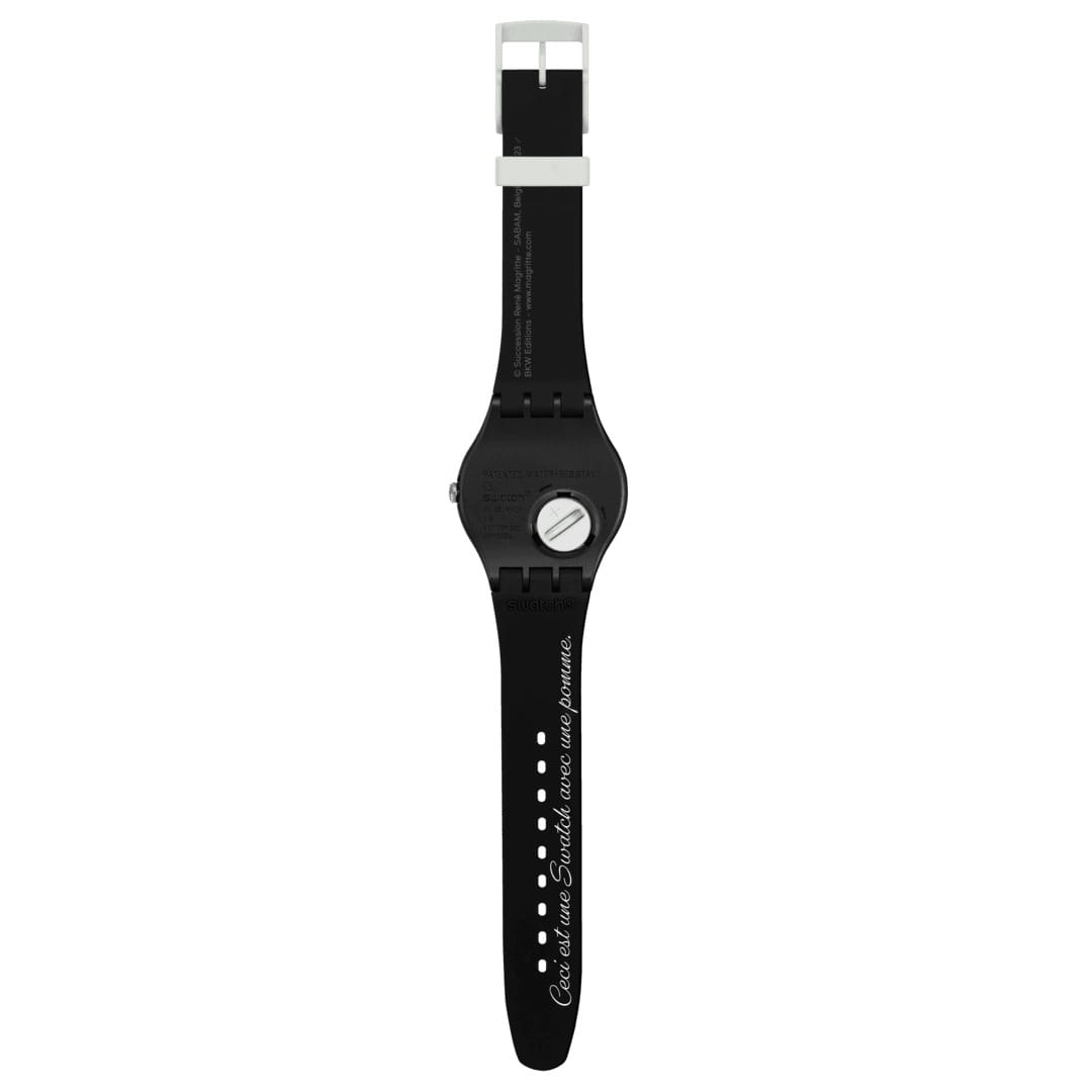 Часы Swatch SUOZ350 — это стильный и современный аксессуар для тех, кто ценит лёгкость и комфорт. Часы идеально подойдут как для мужчин, так и для женщин. На лицевой стороне модели LE FILS DE L'HOMME BY RENE MAGRITTE воспроизведена картина художника-сюрреалиста Рене Магритта «Le Fils de l’homme» («Сын человеческий»), изображение которой простирается по ремешку, корпусу и цветному циферблату. Оборотную сторону ремешка украшает надпись, отсылающая к сюрреалистическому стилю художника: «Ceci est une Swatch avec une pomme», что переводится как «Это часы Swatch с яблоком». Тренчик дополнен принтом с именем художника. Водозащита 30 метров делает часы практичными для повседневного использования. Эти часы подойдут для повседневного ношения и станут ярким акцентом в вашем наряде.