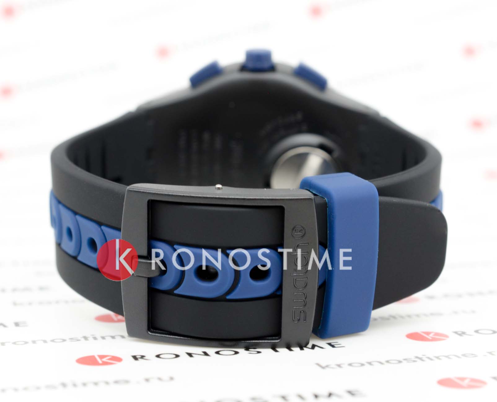 Часы Swatch SUSB406 — это стильный и современный аксессуар для тех, кто ценит лёгкость и комфорт. Часы идеально подойдут как для мужчин, так и для женщин. Первое, на что хочется обратиться внимание у модели этих часов – это их черный циферблат с радиальной полировкой, синими элементами и белыми цифрами. ХронографХронографФункция позволяет измерять отрезки времени с особой точностью: часы, минуты, секунды. Верным признаком хронографа является наличие на циферблате 3 дополнительных окошек-счётчиков. имеет три счетчика и окошко даты у отметки «6 часов» делают эти часы функциональным и современным аксессуаром. На часовую, минутную стрелки нанесено люминесцентное покрытиеЛюминесцентное покрытиеПозволяет считывать показания времени в темноте. Производители наносят на стрелки, часовые индексы, безель или поверхность циферблата светонакопительный состав, дающий холодное свечение., которое светится в темноте, создавая необычное изображение. БезельБезельВнешний ободок, закрепляющий стекло. В спортивных часах так называется поворотное кольцо с делениями на циферблате, выполняет роль таймера – замеряет отрезки времени на шкале. Неподвижный безель – элемент декора. Однонаправленно вращающийся безель на дайверских часах позволяет фиксировать моменты погружения и выныривания на поверхность. и корпус выполнены в матовом черном цвете, а черный ремешок украшен синими акцентами для создания текстурного эффекта. Водозащита 30 метров делает часы практичными для повседневного использования. Эти часы подойдут для повседневного ношения и станут ярким акцентом в вашем наряде.