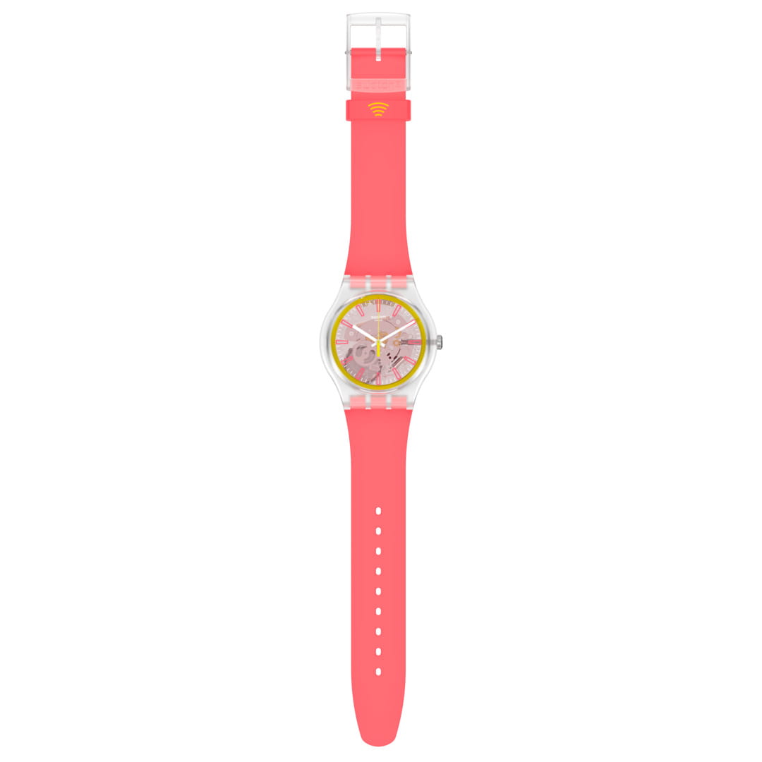 Часы Swatch SVIK104-5300 — это стильный и современный аксессуар для тех, кто ценит лёгкость и комфорт. Часы идеально подойдут как для мужчин, так и для женщин. Эти часы имеют NFC модуль, поэтому это несомненно лучший способ оплачивать покупки.Часы клубничной расцветки с матовым силиконовым ремешком, прозрачным циферблатом в тон и контрастной деталью в виде желтой антенны. Водозащита 30 метров делает часы практичными для повседневного использования. Эти часы подойдут для повседневного ношения и станут ярким акцентом в вашем наряде.