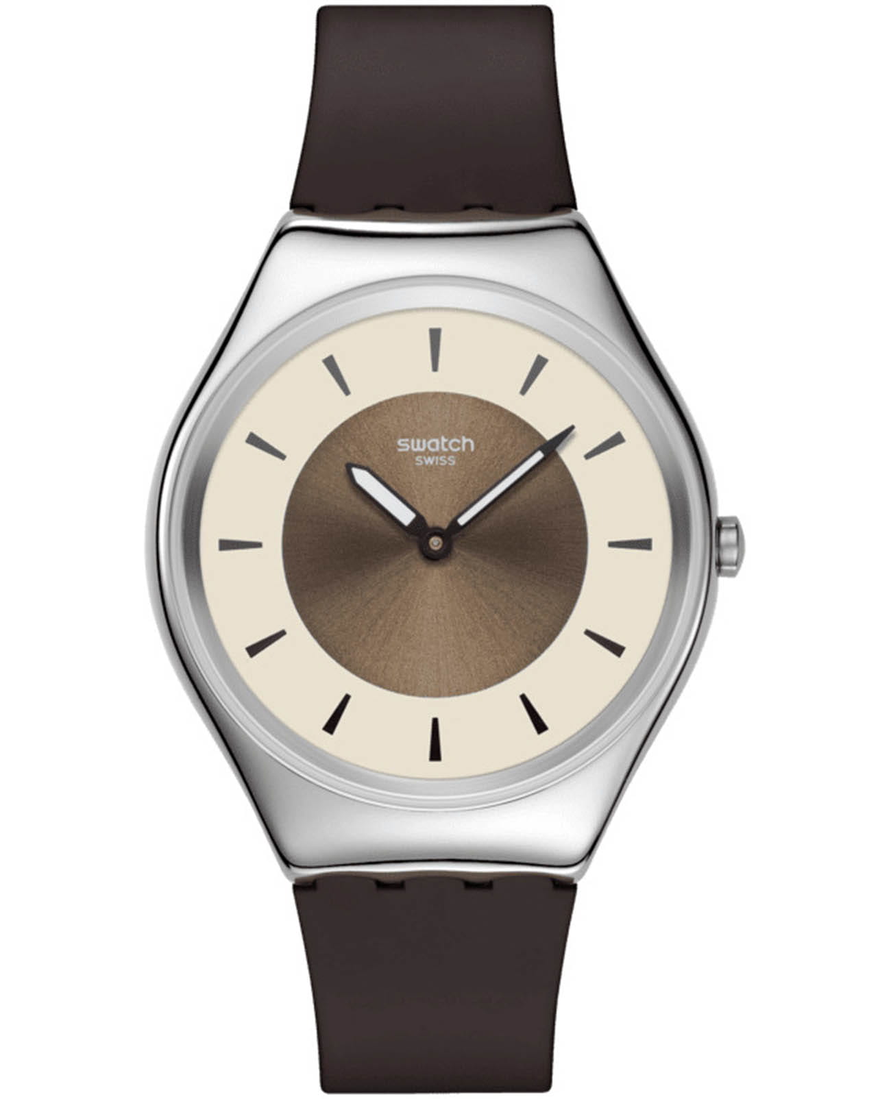 Часы Swatch SYXS158 — это стильный и современный аксессуар для тех, кто ценит лёгкость и комфорт. Часы идеально подойдут как для мужчин, так и для женщин. Эти ультратонкие часы имеют светло-коричневый циферблат с радиальной полировкой, внешним кольцевым принтом цвета слоновой кости и темно-коричневыми часовыми индексами, а также черные часовую и минутную стрелки с эффектом свечения в темноте благодаря люминесцентному покрытиюЛюминесцентное покрытиеПозволяет считывать показания времени в темноте. Производители наносят на стрелки, часовые индексы, безель или поверхность циферблата светонакопительный состав, дающий холодное свечение.. Блестящий корпус и пряжка из нержавеющей стали прекрасно сочетаются с темно-коричневым ремешком с тренчиком в тон и матовой изнанкой цвета слоновой кости. Водозащита 30 метров делает часы практичными для повседневного использования. Эти часы подойдут для повседневного ношения и станут ярким акцентом в вашем наряде.