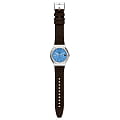 Часы Swatch YIZ405 — это стильный и современный аксессуар для тех, кто ценит лёгкость и комфорт. Эти часы результат сотрудничества двух по-настоящему творческих брендов, ставших символом всегда актуальной классики: Swatch X Hackett. Небесно-голубой циферблат украшен тонкими полосками, расположенными очень близко друг к другу. Темно-коричневый кожаный ремешок элегантно дополняет корпус из нержавеющей стали. Переверните часы – и наслаждайтесь завораживающим зрелищем работающего механизма. В районе отметки 3 часа размещено окошко календаря в форме шляпы, а на часовую и минутную стрелки нанесено люминесцентное покрытиеЛюминесцентное покрытиеПозволяет считывать показания времени в темноте. Производители наносят на стрелки, часовые индексы, безель или поверхность циферблата светонакопительный состав, дающий холодное свечение., которое светится в темноте, создавая необычное изображение. Блестящий корпус из нержавеющей стали дополнен таким же безелемБезельВнешний ободок, закрепляющий стекло. В спортивных часах так называется поворотное кольцо с делениями на циферблате, выполняет роль таймера – замеряет отрезки времени на шкале. Неподвижный безель – элемент декора. Однонаправленно вращающийся безель на дайверских часах позволяет фиксировать моменты погружения и выныривания на поверхность. с выгравированной секундной шкалой. Водозащита 30 метров делает часы практичными для повседневного использования. Эти часы подойдут для повседневного ношения и станут ярким акцентом в вашем наряде.
