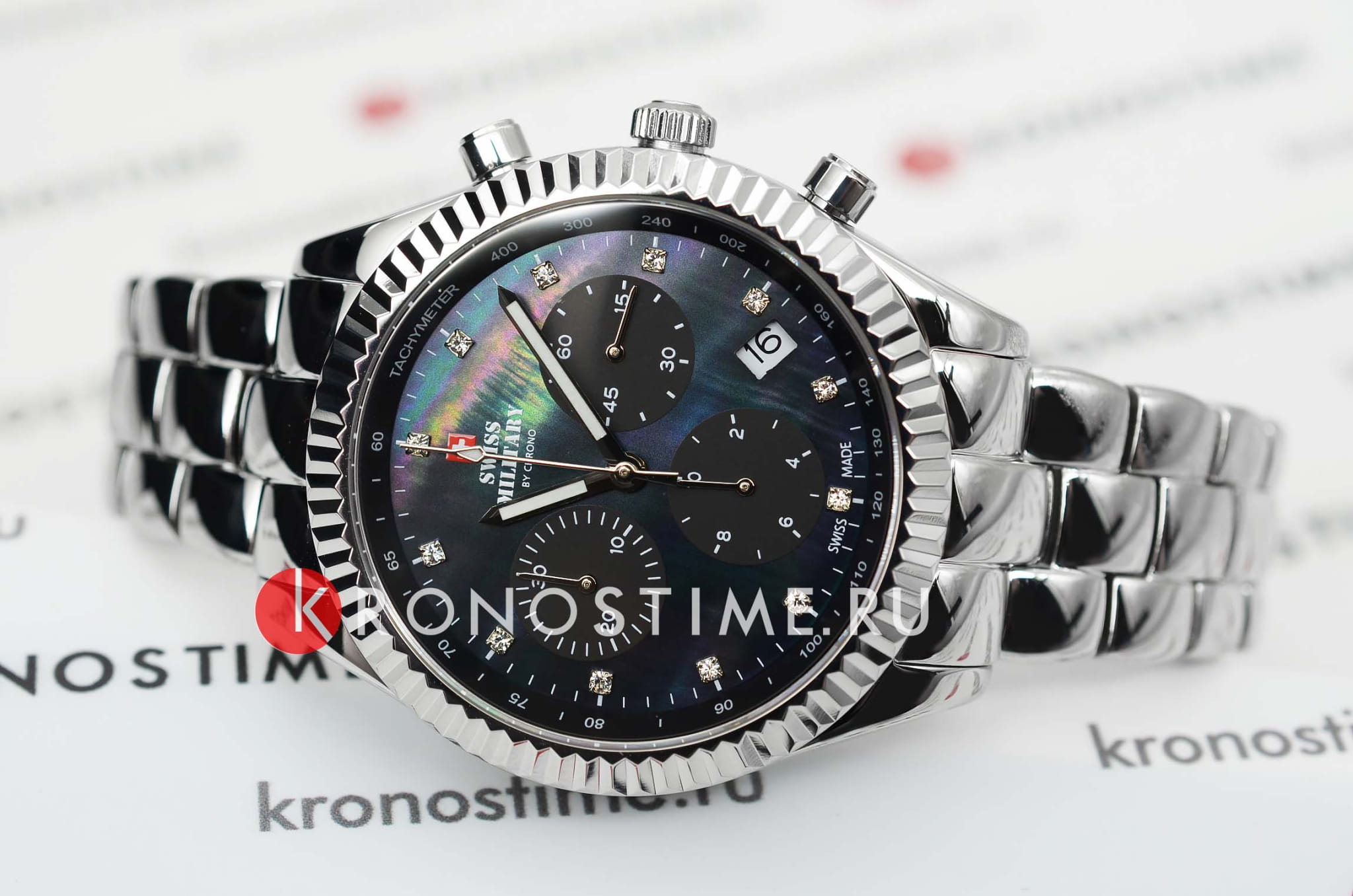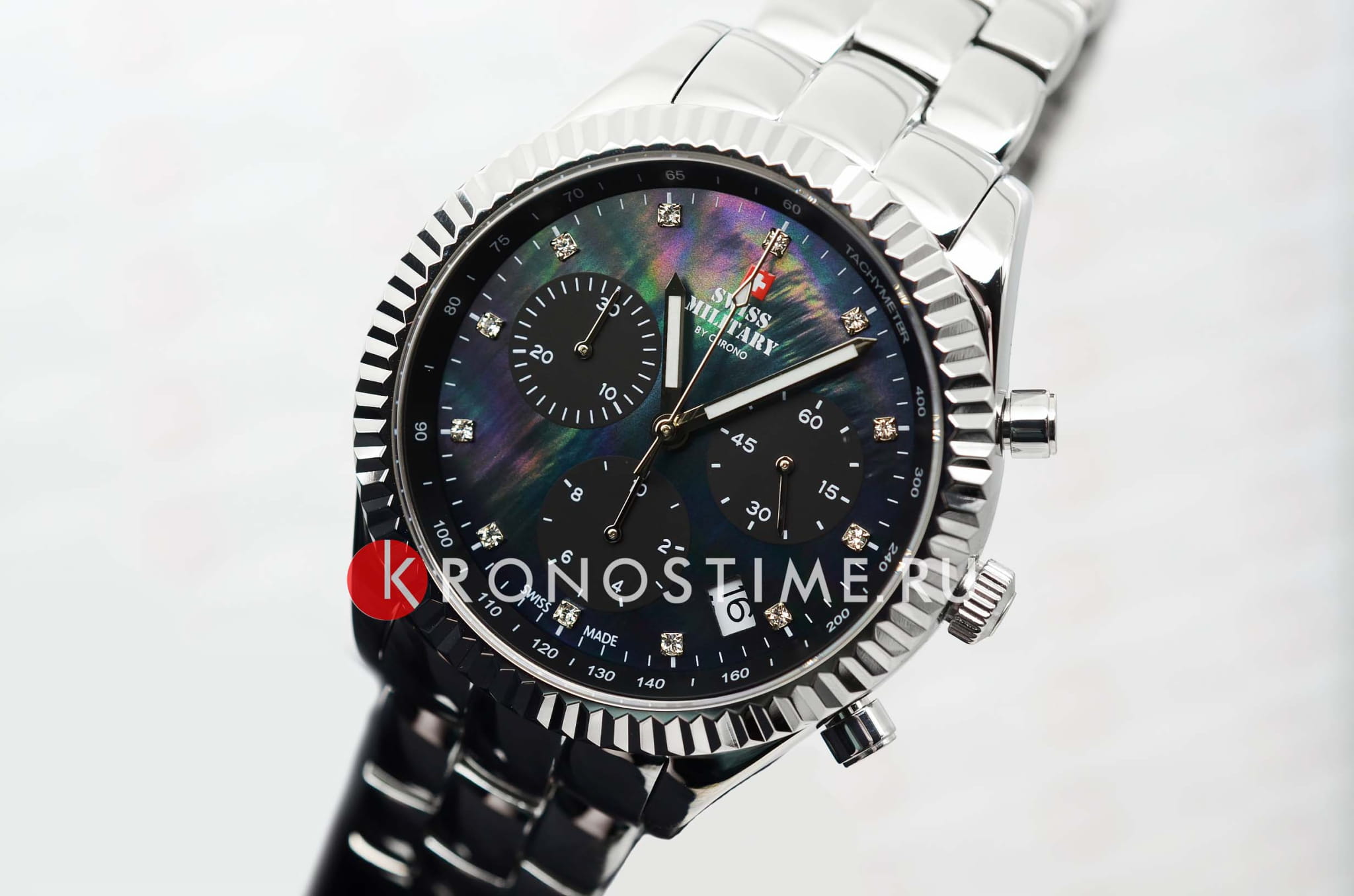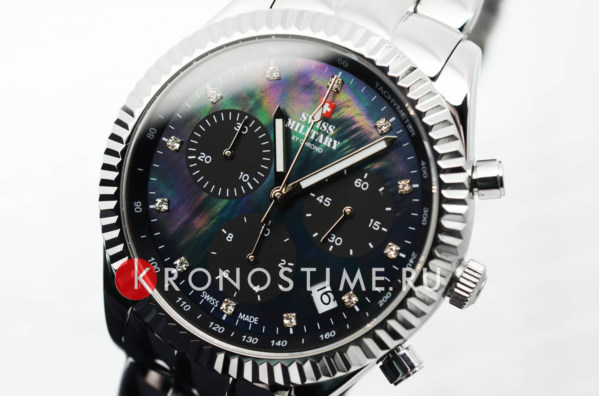 Часы Swiss Military SM30207.01 — это изысканный женский аксессуар, который объединяет швейцарскую точность и элегантный стиль. Корпус из нержавеющей стали диаметром 38 мм украшен рифлёным безелемБезельВнешний ободок, закрепляющий стекло. В спортивных часах так называется поворотное кольцо с делениями на циферблате, выполняет роль таймера – замеряет отрезки времени на шкале. Неподвижный безель – элемент декора. Однонаправленно вращающийся безель на дайверских часах позволяет фиксировать моменты погружения и выныривания на поверхность., что добавляет модели утончённости. Чёрный перламутровый циферблат, декорированный кристаллами, надёжно защищён сапфировым стекломСапфировое стеклоПрочный и надёжный материал из кристалла сапфира синтетического происхождения, характеризующийся особой твёрдостью и устойчивостью к царапинам и повреждениям., устойчивым к царапинам.