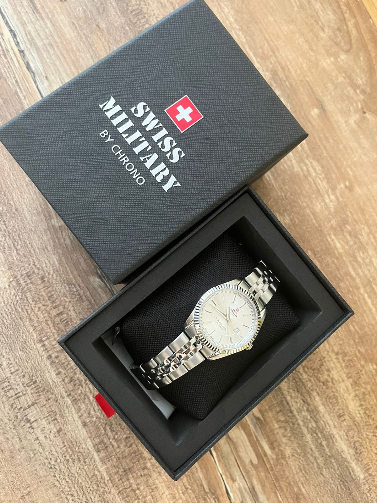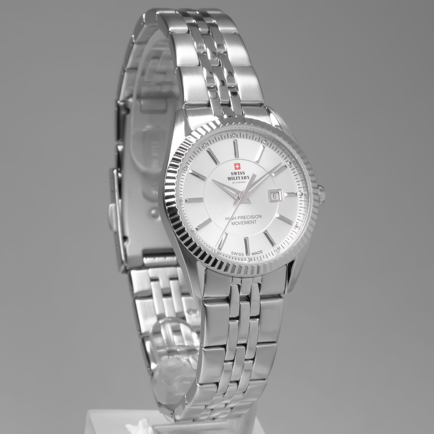 Часы Swiss Military SM34066.02 — это изысканный женский аксессуар, объединяющий элегантность и швейцарскую точность. Корпус диаметром 30 мм и браслет выполнены из нержавеющей стали, что придаёт часам стильный и долговечный характер. Серебристый циферблат с классическими индексами и стрелками защищён минеральным стеклом с сапфировым покрытиемСапфировое стеклоПрочный и надёжный материал из кристалла сапфира синтетического происхождения, характеризующийся особой твёрдостью и устойчивостью к царапинам и повреждениям., устойчивым к царапинам.