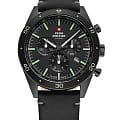 Часы-хронографХронографФункция позволяет измерять отрезки времени с особой точностью: часы, минуты, секунды. Верным признаком хронографа является наличие на циферблате 3 дополнительных окошек-счётчиков. с секундомеромСекундомерСекундоме́р — прибор, способный измерять интервалы времени с точностью до долей секунды.. Кварцевый механизм с высокой точностью. минеральное стеклоМинеральное стеклоМинеральное стекло представляет собой искусственно выращенный минерал кварца. Такое стекло отличается особой устойчивостью к повреждениям и царапинам. Уступает по некоторым качествам сапфировому стеклу. устойчивое к появлению царапин, обладающее высокой прозрачностью. Стрелки и метки с люминесцентным покрытиемЛюминесцентное покрытиеПозволяет считывать показания времени в темноте. Производители наносят на стрелки, часовые индексы, безель или поверхность циферблата светонакопительный состав, дающий холодное свечение.. Класс водозащиты: 100 метров, позволит плавать, нырять и заниматься другими водными видами спорта. Корпус часов изготовлен из нержавеющей стали с PVD-покрытиемPVDУльтратонкое покрытие наносится в технике вакуумного напыления, сочетает в себе нитрид титана особой прочности со слоем золота или оксида хрома. Несёт в себе декоративную или защитную функцию.. БезельБезельВнешний ободок, закрепляющий стекло. В спортивных часах так называется поворотное кольцо с делениями на циферблате, выполняет роль таймера – замеряет отрезки времени на шкале. Неподвижный безель – элемент декора. Однонаправленно вращающийся безель на дайверских часах позволяет фиксировать моменты погружения и выныривания на поверхность. с PVD-покрытиемPVDУльтратонкое покрытие наносится в технике вакуумного напыления, сочетает в себе нитрид титана особой прочности со слоем золота или оксида хрома. Несёт в себе декоративную или защитную функцию.. Ремешок с классической застежкой.