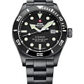 Мужские швейцарские наручные часы Swiss Military by Chrono Diver SMA34075.04, механический механизм (автоматический калибр) с высокой точностью. Сапфировое стекло устойчивое к появлению царапин, обладающее высокой прозрачностью.Корпус часов изготовлен из стали, черного цвета.