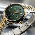 Мужские швейцарские наручные часы Swiss Military by Chrono SMA34085.39, механический механизм (автоматический калибр) с высокой точностью. Сапфировое стеклоСапфировое стеклоПрочный и надёжный материал из кристалла сапфира синтетического происхождения, характеризующийся особой твёрдостью и устойчивостью к царапинам и повреждениям. устойчивое к появлению царапин, обладающее высокой прозрачностью. Класс водозащиты: 100 метров, позволит плавать, нырять и заниматься другими водными видами спорта. Корпус часов изготовлен из стали с частичным PVD-покрытиемPVDУльтратонкое покрытие наносится в технике вакуумного напыления, сочетает в себе нитрид титана особой прочности со слоем золота или оксида хрома. Несёт в себе декоративную или защитную функцию., цвета желтое золото. Люминесцентная подсветкаЛюминесцентное покрытиеПозволяет считывать показания времени в темноте. Производители наносят на стрелки, часовые индексы, безель или поверхность циферблата светонакопительный состав, дающий холодное свечение. стрелок. Браслет с раскладной застёжкойРаскладная застёжкаТакой тип застёжки используется только на браслетах из металла. Она никогда не раскрывается полностью, происходит разделение на 2 и более частей. Раскладывающая застёжка снизит вероятность потери часов к минимуму..