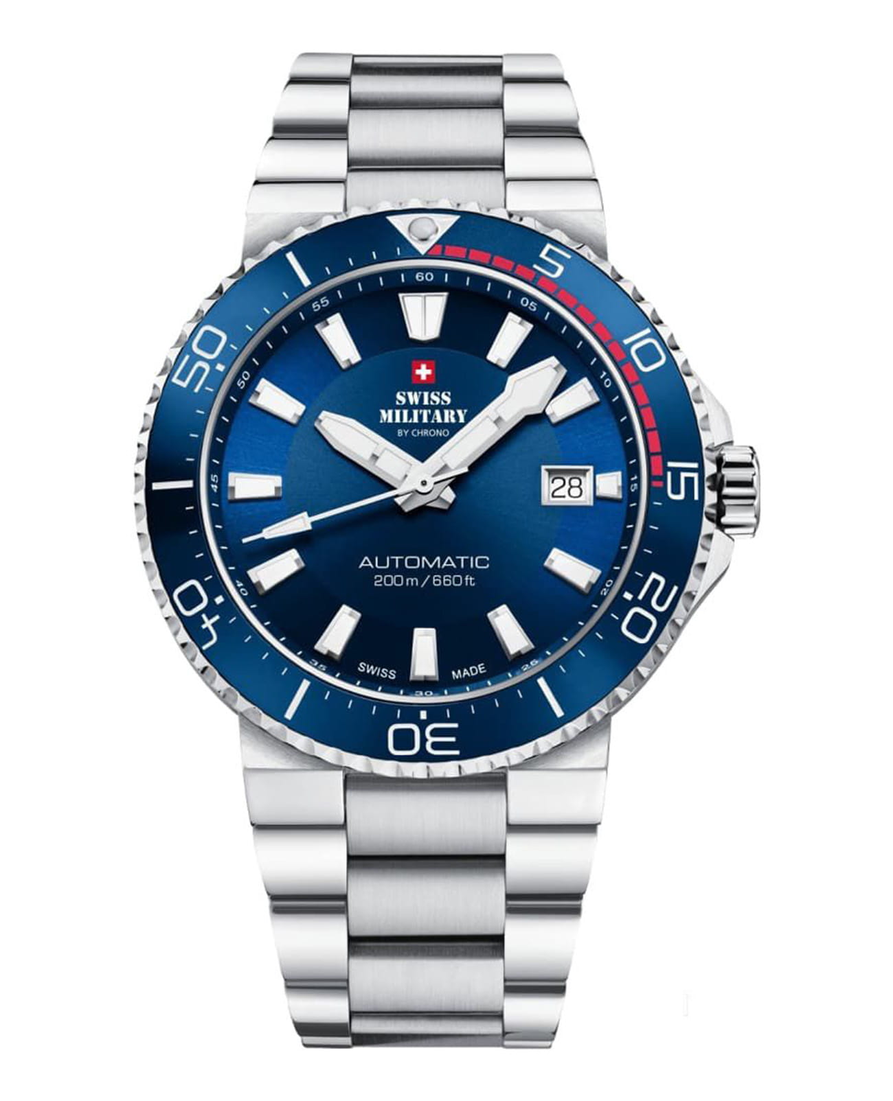 Мужские швейцарские наручные часы Swiss Military by Chrono Automatic Dive SMA34086.02, механический механизм (автоматический калибр) с высокой точностью. Сапфировое стекло устойчивое к появлению царапин, обладающее высокой прозрачностью. Класс водозащиты: 200 метров, позволит плавать, нырять и заниматься другими водными видами спорта. Корпус часов изготовлен из стали, цвета.
