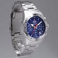 Мужские швейцарские кварцевые часы-хронографХронографФункция позволяет измерять отрезки времени с особой точностью: часы, минуты, секунды. Верным признаком хронографа является наличие на циферблате 3 дополнительных окошек-счётчиков. Swiss Military by Chrono SMS34072.02, кварцевый механизм с высокой точностью. Минеральное стекло устойчивое к появлению царапин, обладающее высокой прозрачностью. Класс водозащиты: 100 метров, позволит плавать, нырять и заниматься другими водными видами спорта. Корпус часов изготовлен из нержавеющей стали серебристого цвета. Апертура даты расположена между отметками 4 и 5 часов. Стрелки и метки с люминесцентной подсветкойЛюминесцентное покрытиеПозволяет считывать показания времени в темноте. Производители наносят на стрелки, часовые индексы, безель или поверхность циферблата светонакопительный состав, дающий холодное свечение.. Заводная головка с защитой. Браслет с раскладной застёжкойРаскладная застёжкаТакой тип застёжки используется только на браслетах из металла. Она никогда не раскрывается полностью, происходит разделение на 2 и более частей. Раскладывающая застёжка снизит вероятность потери часов к минимуму..