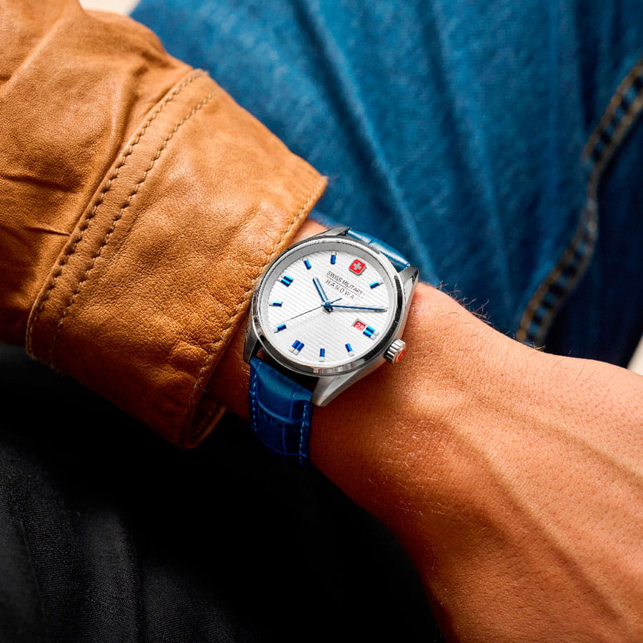 Швейцарские мужские часы Swiss Military Hanowa Roadrunner SMWGB2200103, кварцевый механизм с высокой точностью. Сапфировое стеклоСапфировое стеклоПрочный и надёжный материал из кристалла сапфира синтетического происхождения, характеризующийся особой твёрдостью и устойчивостью к царапинам и повреждениям. устойчивое к появлению царапин, обладающее высокой прозрачностью. Класс водозащиты: 100 метров, позволит плавать, нырять и заниматься другими водными видами спорта. Корпус часов изготовлен из стали серебристого цвета. Кожаный ремешок с классической застежкой.