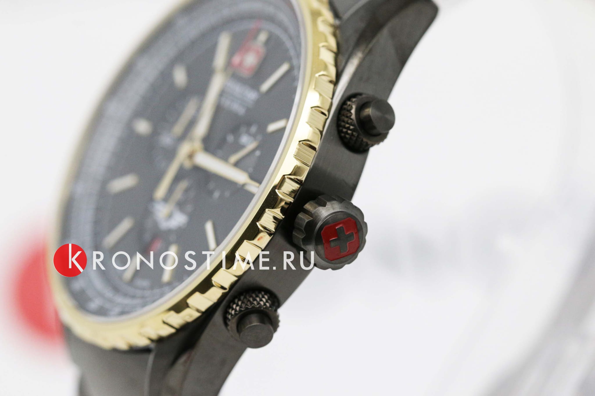 Мужские швейцарские часы c хронографомХронографФункция позволяет измерять отрезки времени с особой точностью: часы, минуты, секунды. Верным признаком хронографа является наличие на циферблате 3 дополнительных окошек-счётчиков. Swiss Military Hanowa SMWGI0000341, кварцевый механизм с высокой точностью. Сапфировое стеклоСапфировое стеклоПрочный и надёжный материал из кристалла сапфира синтетического происхождения, характеризующийся особой твёрдостью и устойчивостью к царапинам и повреждениям. устойчивое к появлению царапин, обладающее высокой прозрачностью. Класс водозащиты: 100 метров, позволит плавать, нырять и заниматься другими водными видами спорта. Корпус и браслет часов изготовлены из стали с IP-покрытиемIP-покрытиеМетод ионного напыления. Демонстрирует повышенную устойчивость к истиранию, окислению и химическим веществам. Под воздействием высокого давления и температуры около 1500°C молекулы металла надёжно соединяются с частицами корпуса часов.. Индикация даты. ТахиметрТахиметрРазмеченная шкала, располагается на ободке или безеле часов. Тахиметр позволяет рассчитать скорость на определённом участке пути, расстояние измеряется в километрах или милях.. Черный циферблат с часовыми индексами в виде штрихов. Стрелки и метки с люминесцентным покрытиемЛюминесцентное покрытиеПозволяет считывать показания времени в темноте. Производители наносят на стрелки, часовые индексы, безель или поверхность циферблата светонакопительный состав, дающий холодное свечение..