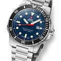 Модель SMS34102.02 от Swiss Military by Chrono — это надёжные швейцарские спортивные часы, сочетающие в себе прочность, функциональность и элегантный дизайн. Корпус и браслет выполнены из нержавеющей стали, подчёркивая прочность и элегантность конструкции. Циферблат с солнечным узором и крупными метками, покрытыми люминесцентным покрытиемЛюминесцентное покрытиеПозволяет считывать показания времени в темноте. Производители наносят на стрелки, часовые индексы, безель или поверхность циферблата светонакопительный состав, дающий холодное свечение., обеспечивает отличную читаемость в любых условиях. Часы оснащены швейцарским солнечным кварцевым механизмом Ronda Solartech Caliber 215, обеспечивающим точный ход и запас хода до 8 месяцев без подзарядки. Циферблат защищён сапфировым стекломСапфировое стеклоПрочный и надёжный материал из кристалла сапфира синтетического происхождения, характеризующийся особой твёрдостью и устойчивостью к царапинам и повреждениям., устойчивым к царапинам. Установлена раскладная застёжкаРаскладная застёжкаТакой тип застёжки используется только на браслетах из металла. Она никогда не раскрывается полностью, происходит разделение на 2 и более частей. Раскладывающая застёжка снизит вероятность потери часов к минимуму. для надёжной фиксации на запястье. Односторонний вращающийся безель с PVD-покрытиемPVDУльтратонкое покрытие наносится в технике вакуумного напыления, сочетает в себе нитрид титана особой прочности со слоем золота или оксида хрома. Несёт в себе декоративную или защитную функцию. позволяет точно отслеживать время. Модель обладает водонепроницаемостью до 100 метров, что делает её подходящей для плавания и сноркелинга.