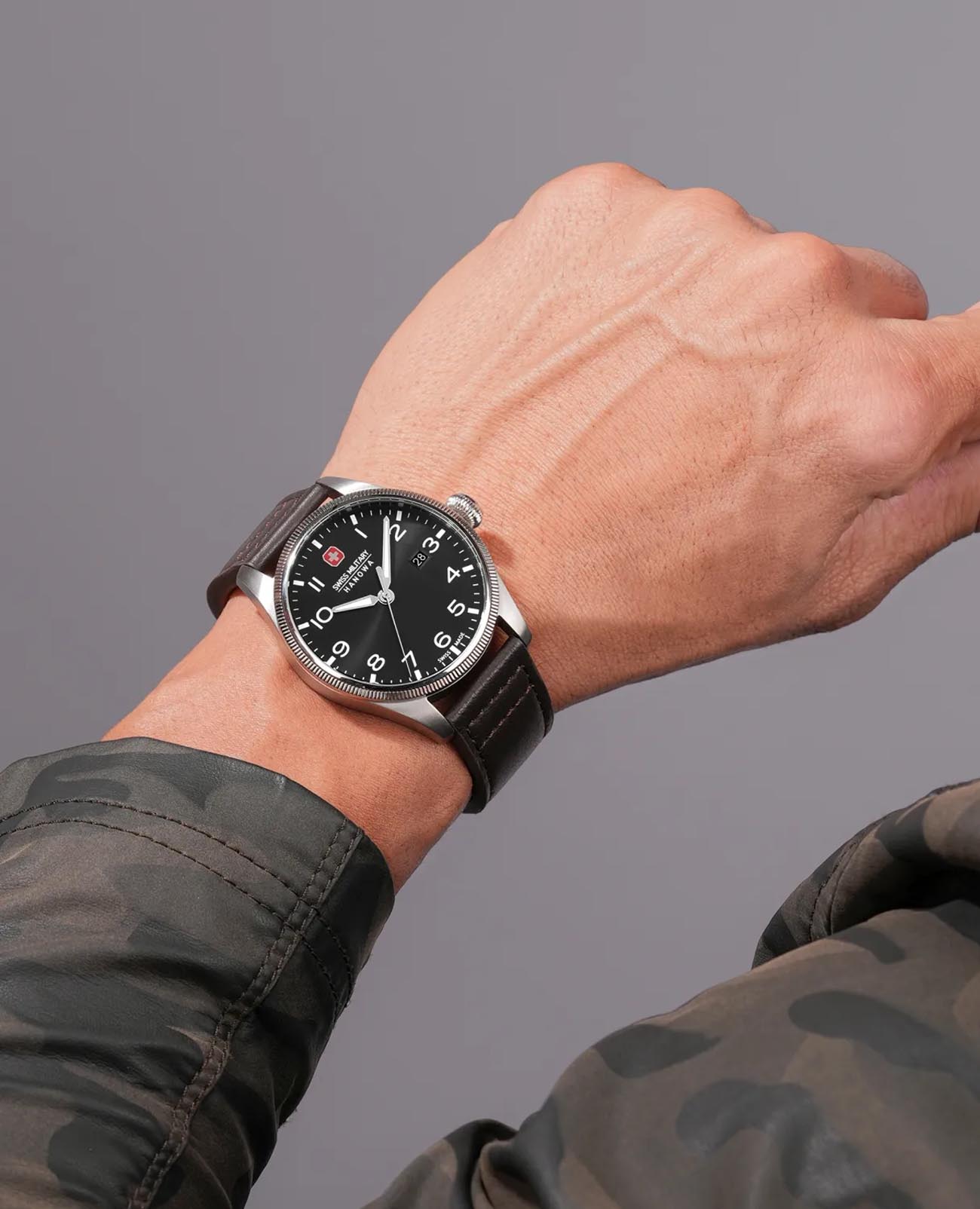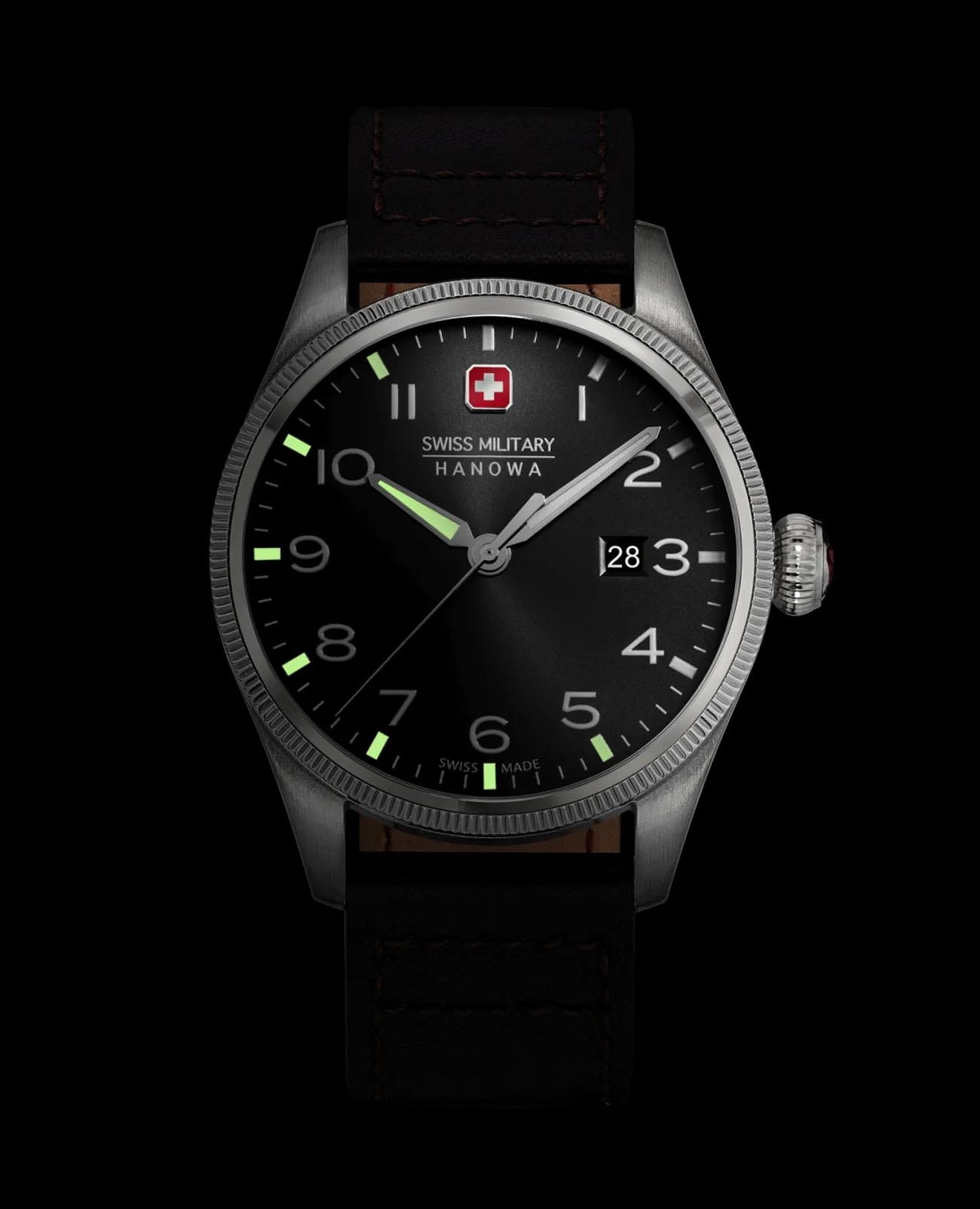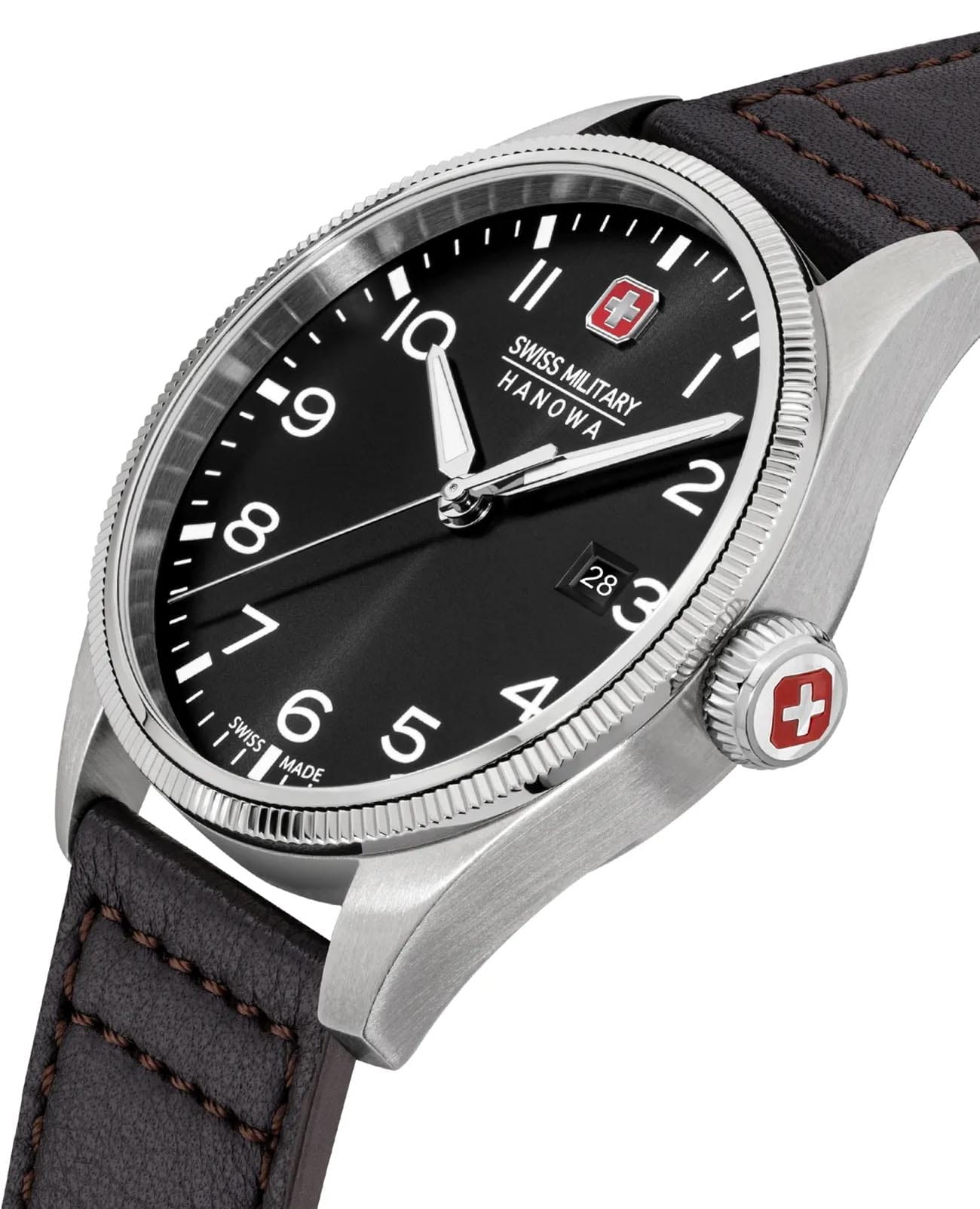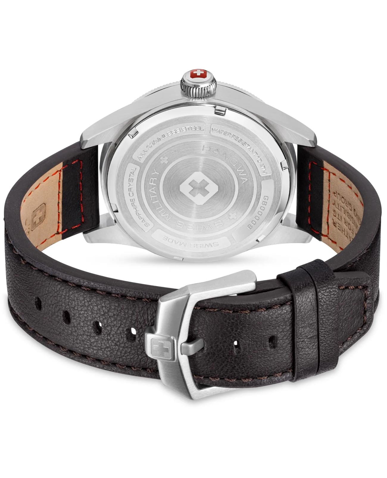 Мужские швейцарские часы Swiss Military Hanowa Thunderbolt SMWGB0000804, кварцевый механизм с высокой точностью. Сапфировое стеклоСапфировое стеклоПрочный и надёжный материал из кристалла сапфира синтетического происхождения, характеризующийся особой твёрдостью и устойчивостью к царапинам и повреждениям. устойчивое к появлению царапин, обладающее высокой прозрачностью. Класс водозащиты: 100 метров, позволит плавать, нырять и заниматься другими водными видами спорта. Корпус часов изготовлен из стали. Кожаный ремешок на стандарной застёке. Окошко даты находится в положении 3 часа.