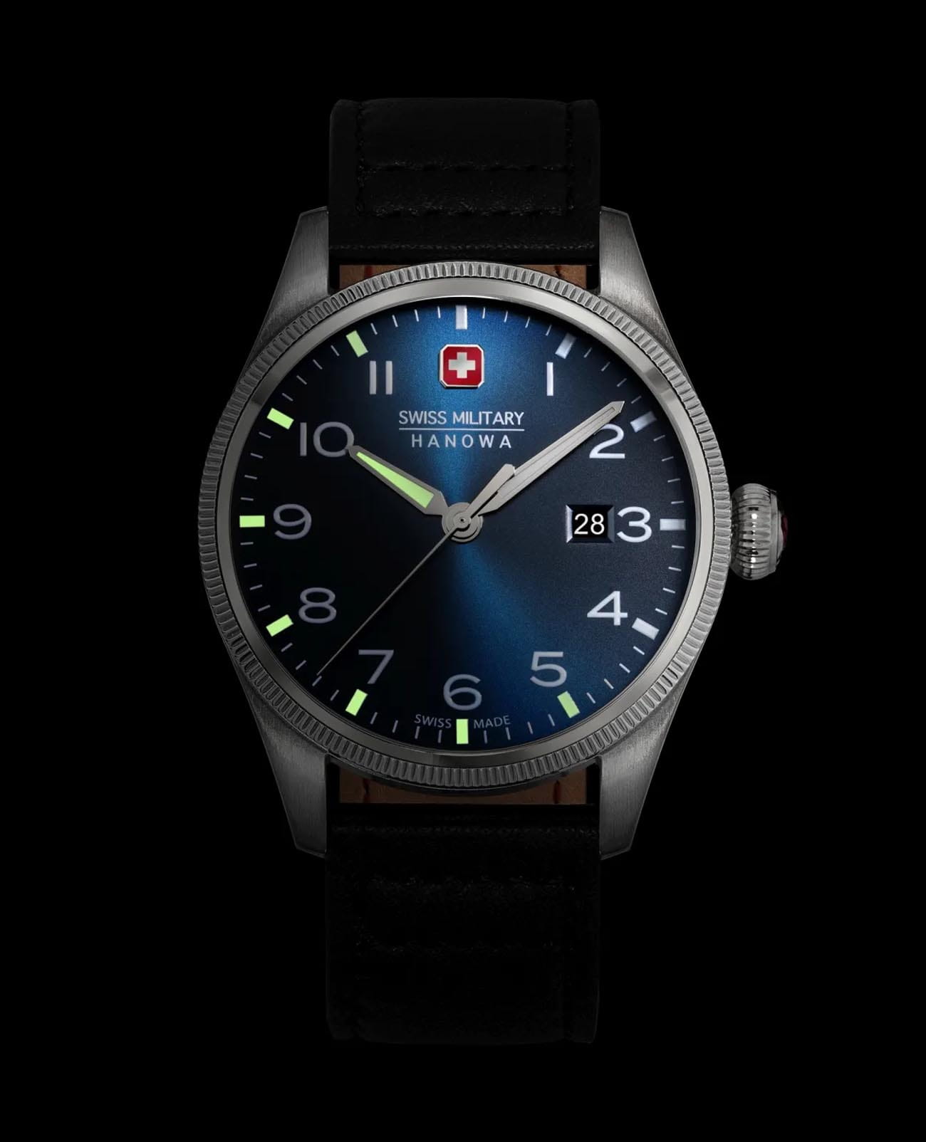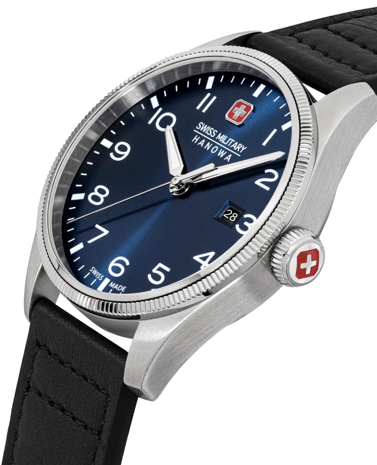 Мужские швейцарские часы Swiss Military Hanowa Thunderbolt SMWGB0000805, кварцевый механизм с высокой точностью. Сапфировое стеклоСапфировое стеклоПрочный и надёжный материал из кристалла сапфира синтетического происхождения, характеризующийся особой твёрдостью и устойчивостью к царапинам и повреждениям. устойчивое к появлению царапин, обладающее высокой прозрачностью. Класс водозащиты: 100 метров, позволит плавать, нырять и заниматься другими водными видами спорта. Корпус часов изготовлен из стали. Кожаный ремешок на стандарной застёке. Окошко даты находится в положении 3 часа.