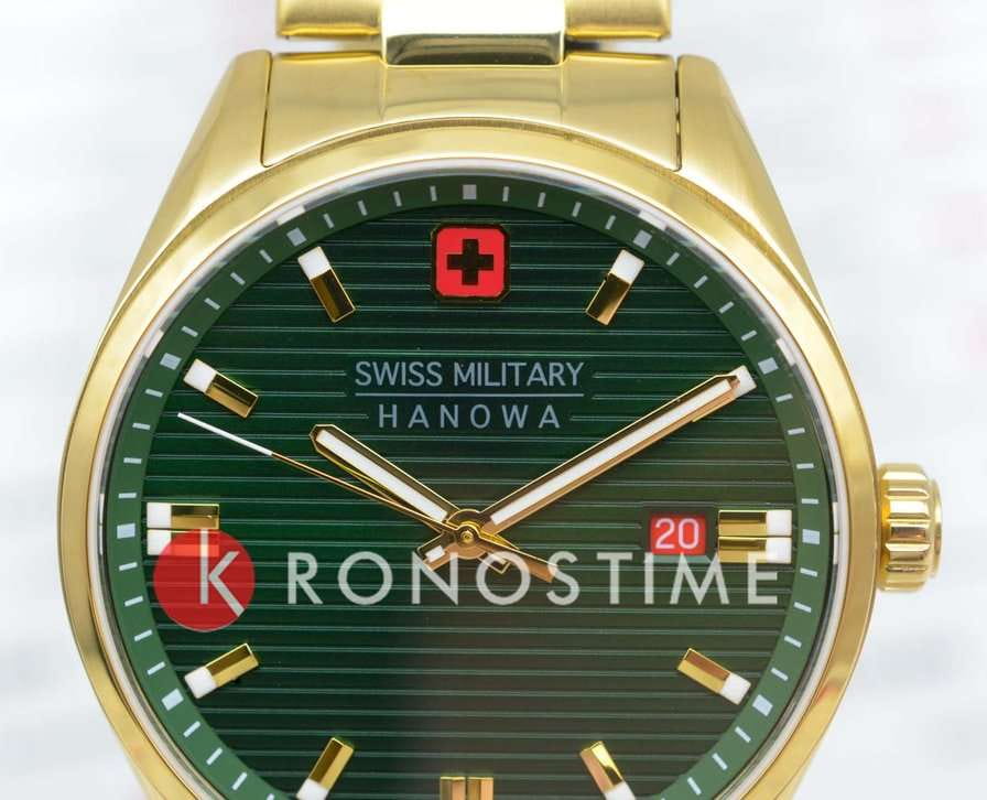 Мужские швейцарские часы Swiss Military Hanowa SMWGH2200112-SET – это элегантные часы, сочетающие в себе классический дизайн и современную функциональность. Корпус из нержавеющей стали с PVD-покрытиемPVDУльтратонкое покрытие наносится в технике вакуумного напыления, сочетает в себе нитрид титана особой прочности со слоем золота или оксида хрома. Несёт в себе декоративную или защитную функцию. диаметром 43 мм сбалансирован и элегантен. Сапфировое стеклоСапфировое стеклоПрочный и надёжный материал из кристалла сапфира синтетического происхождения, характеризующийся особой твёрдостью и устойчивостью к царапинам и повреждениям. с антибликовым покрытием защищает циферблат от царапин и обеспечивает отличную читаемость при любом освещении. Браслет с раскладной застёжкойРаскладная застёжкаТакой тип застёжки используется только на браслетах из металла. Она никогда не раскрывается полностью, происходит разделение на 2 и более частей. Раскладывающая застёжка снизит вероятность потери часов к минимуму. идеально дополняют дизайн часов, обеспечивая комфортное ношение. Люминесцентное покрытиеЛюминесцентное покрытиеПозволяет считывать показания времени в темноте. Производители наносят на стрелки, часовые индексы, безель или поверхность циферблата светонакопительный состав, дающий холодное свечение. стрелок и меток позволит вам следить за временем даже в полной темноте. Индикатор даты в положении 3 часа. Водонепроницаемость до 100 метров хорошо подходят для повседневного ношения и занятий водными видами спорта.