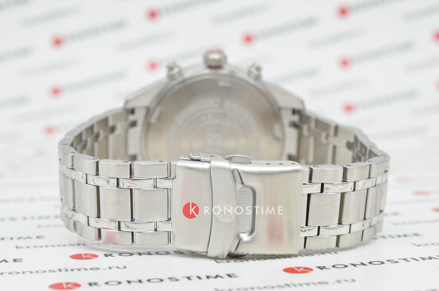 Мужские швейцарские часы Swiss Military Hanowa Afterburn Chrono SMWGI0000309 с хронографомХронографФункция позволяет измерять отрезки времени с особой точностью: часы, минуты, секунды. Верным признаком хронографа является наличие на циферблате 3 дополнительных окошек-счётчиков. и секундомеромСекундомерСекундоме́р — прибор, способный измерять интервалы времени с точностью до долей секунды.. Сапфировое стеклоСапфировое стеклоПрочный и надёжный материал из кристалла сапфира синтетического происхождения, характеризующийся особой твёрдостью и устойчивостью к царапинам и повреждениям. с антибликовым покрытием защищает циферблат от царапин и обеспечивает отличную читаемость при любом освещении. Корпус из нержавеющей стали диаметром 44 мм сбалансирован и элегантен. Браслет с раскладной застёжкойРаскладная застёжкаТакой тип застёжки используется только на браслетах из металла. Она никогда не раскрывается полностью, происходит разделение на 2 и более частей. Раскладывающая застёжка снизит вероятность потери часов к минимуму. идеально дополняют дизайн часов, обеспечивая комфортное ношение. Люминесцентное покрытиеЛюминесцентное покрытиеПозволяет считывать показания времени в темноте. Производители наносят на стрелки, часовые индексы, безель или поверхность циферблата светонакопительный состав, дающий холодное свечение. стрелок и меток позволит вам следить за временем даже в полной темноте. Стальной безельБезельВнешний ободок, закрепляющий стекло. В спортивных часах так называется поворотное кольцо с делениями на циферблате, выполняет роль таймера – замеряет отрезки времени на шкале. Неподвижный безель – элемент декора. Однонаправленно вращающийся безель на дайверских часах позволяет фиксировать моменты погружения и выныривания на поверхность. с PVD-покрытиемPVDУльтратонкое покрытие наносится в технике вакуумного напыления, сочетает в себе нитрид титана особой прочности со слоем золота или оксида хрома. Несёт в себе декоративную или защитную функцию.. Часы оснащены центральной секундной стрелкой и окошком даты в положении «6 часов», что делает их функциональными для повседневного использования. ТахиметрТахиметрРазмеченная шкала, располагается на ободке или безеле часов. Тахиметр позволяет рассчитать скорость на определённом участке пути, расстояние измеряется в километрах или милях. по внешнему краю. Водонепроницаемость до 100 метров. Идеальный выбор для тех, кто ценит качество и долговечность.
